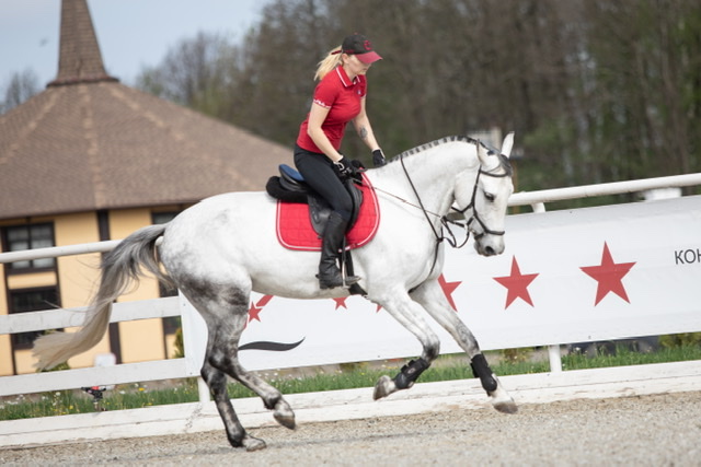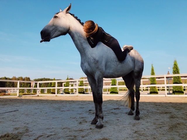 Полностью здоровая и адекватная лошадь. Прыгает до 110 связки, маршруты до метра под любителем. Выше не пробовали. Также абсолютно безопасна в лесах, полях.