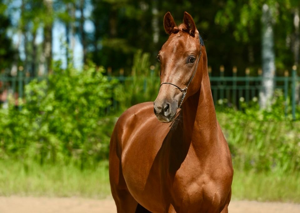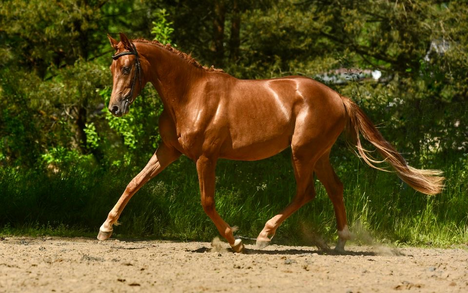 Очень качественные аллюры, шаг с заступом 3-4 копыта, галоп в горку с отличным выносом плеча,великолепная рысь.Бегает на корде с троком ,седлом, все бытовые манипуляции на 100%, получала лучшие корма и подкормки, выращенная в любви и заботе.