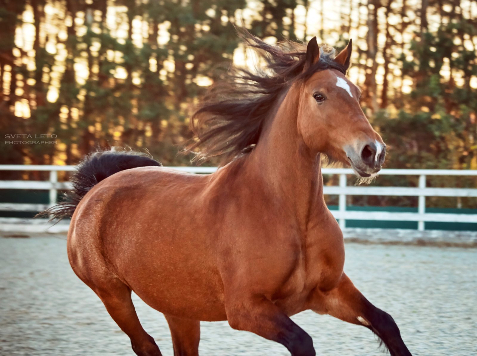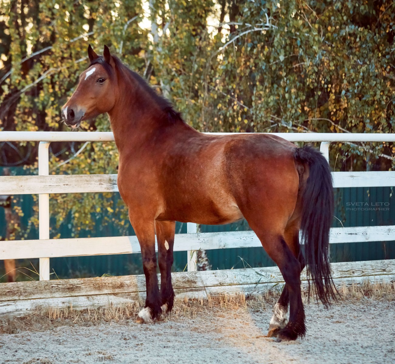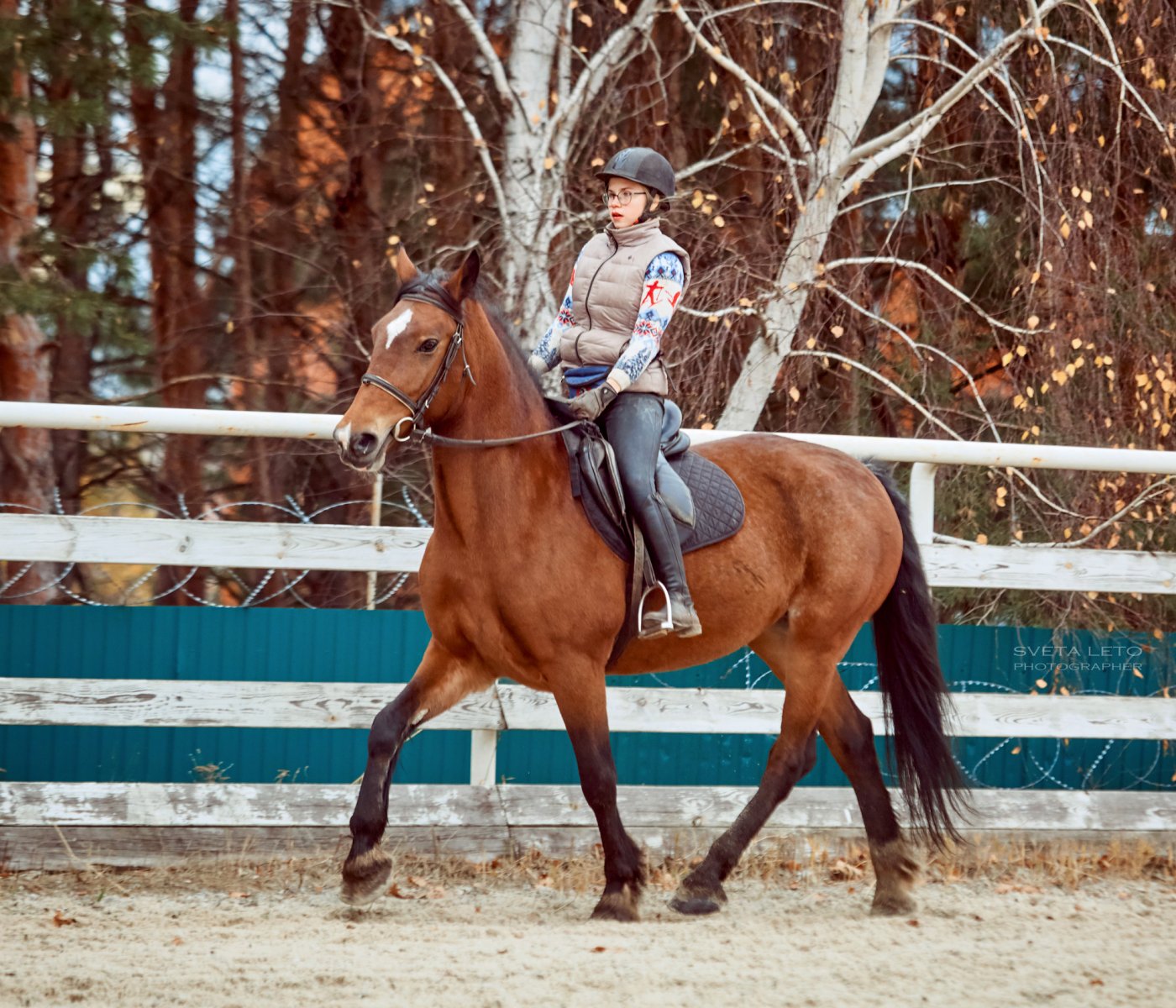Абсолютно устойчивая психика, ничего не боится, спокойно ведёт себя в полях. Удобная и мягкая под седлом.