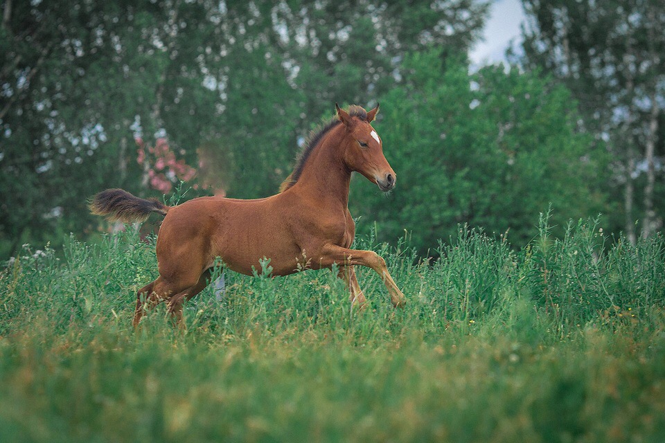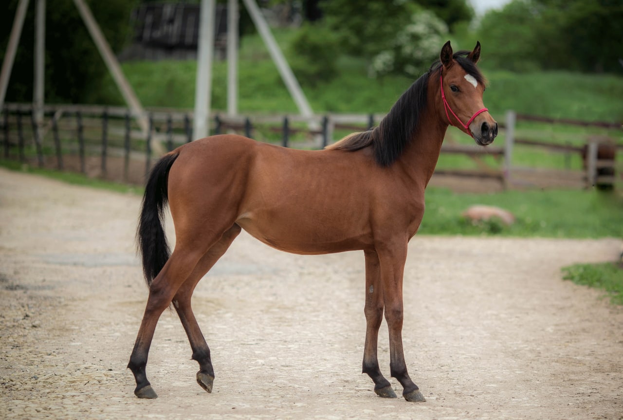 Отец арабский жеребец Парадный, правильный, породный, линии Амурата (спортивная линия), отлично себя показал в различных дисциплинах таких как дистанционные конные пробеги (всегда в призах, в том числе и международных стартах), классический спорт (конкур, выездка), на данный момент выступает в пони-спорте (так же в призах)