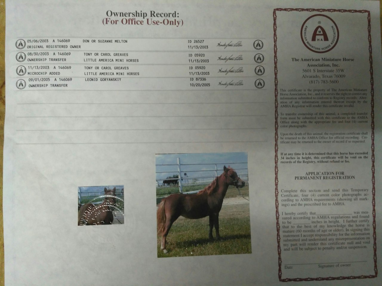 Продается кобыла американская миниатюрная рыжей масти, 77 в/х 2003 г.р. с жеребенком гнедой масти(жеребчик) той же породы от вороно-пегого жеребца. Документы: американский сертификат, педигри, паспорт ВНИИК. Добрая, ласковая кобыла, хорошая мать. Колется, расчищается, грузится на 5+. Не заезжена. С человеком дружит, в леваде подходит. Находится в г.Нижний Новгород. Есть бюджетная доставка. 250 т.р. Причина продажи не связана с лошадью. Сокращение поголовья.