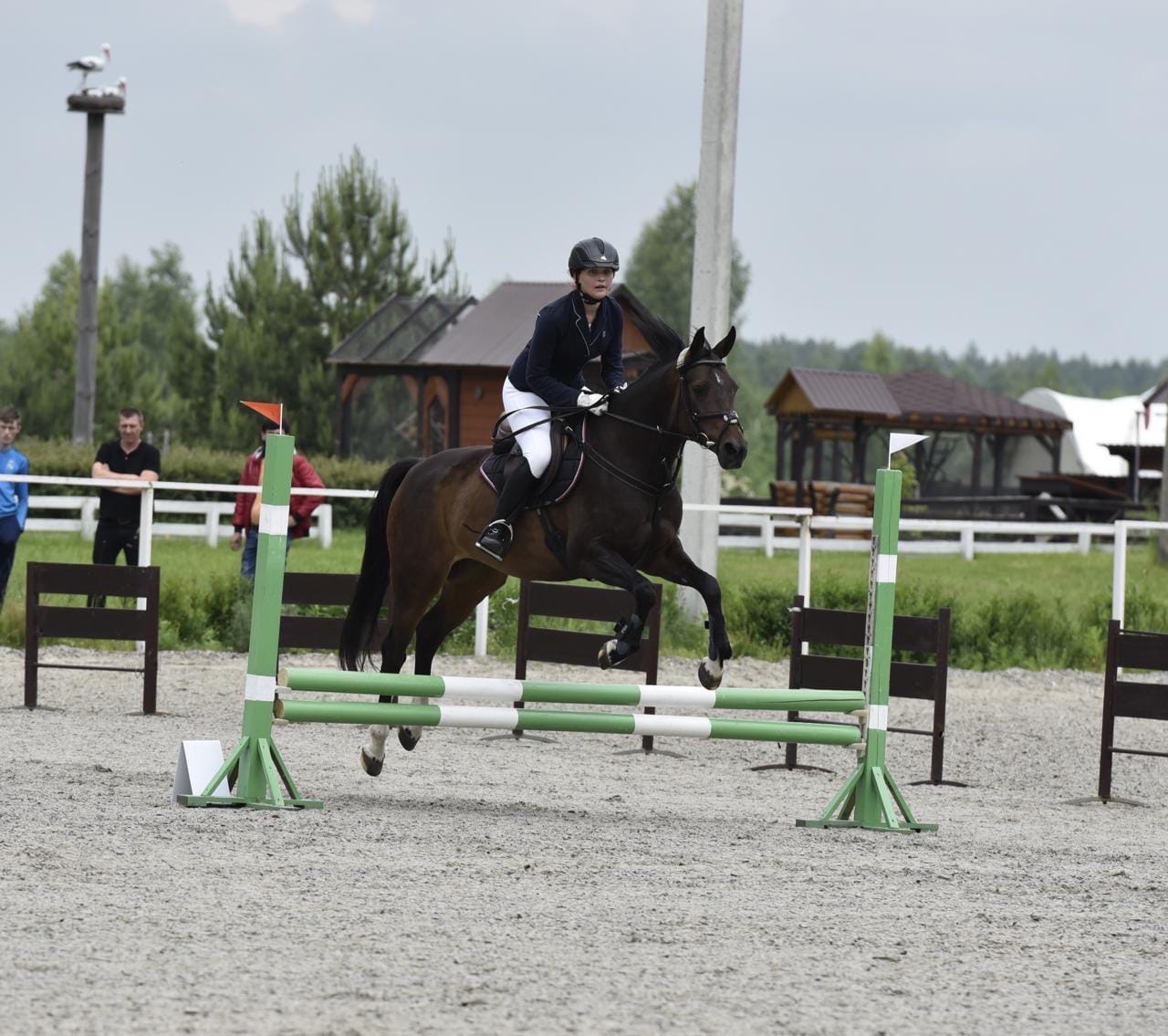 Работается в конкур и выездку. Под верхом маршруты 80-90 см, одиночки 100 см, в шпринте 120 см. Неплохо обучена в руках, знает пару трюков.