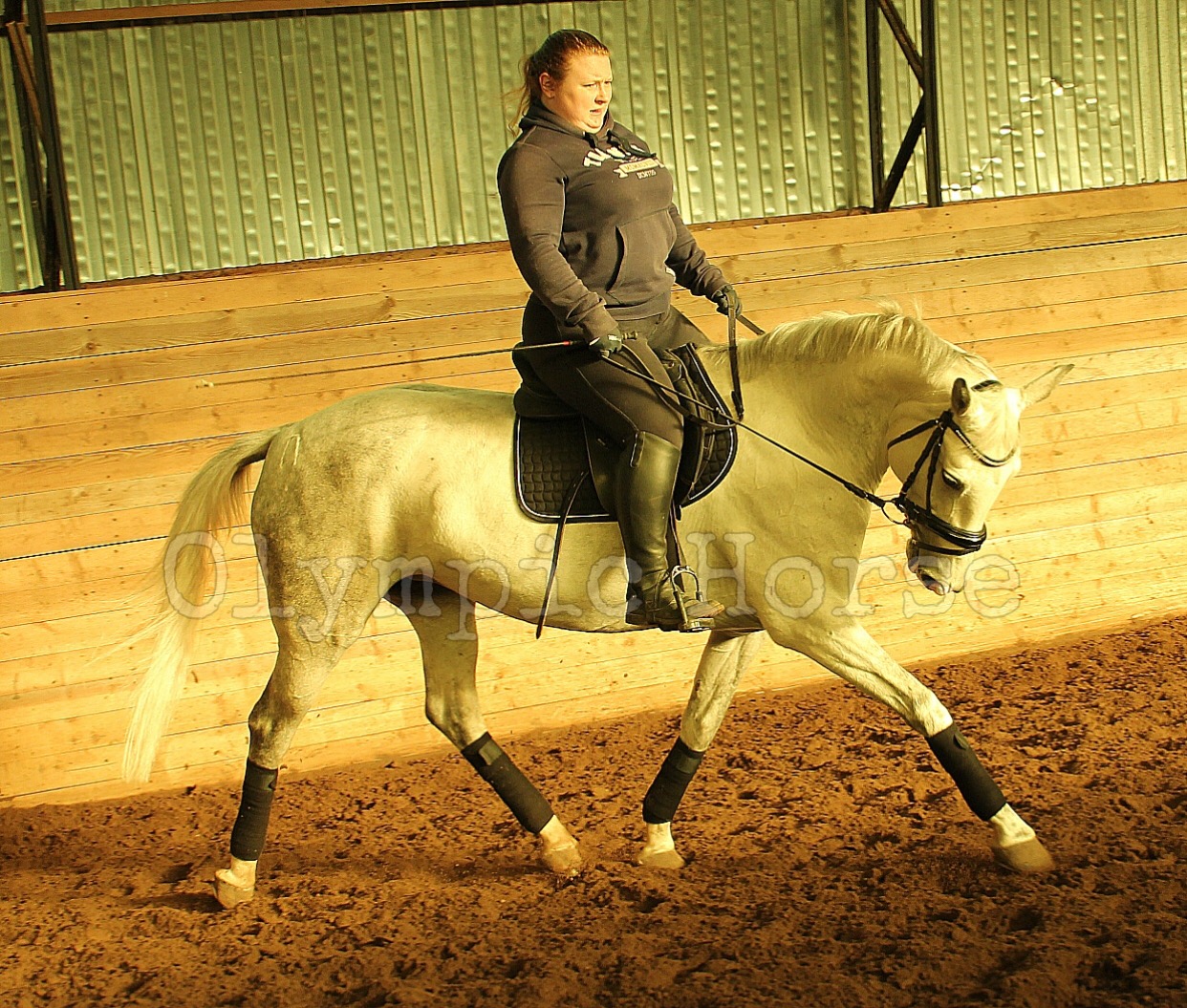 На хороших пластичных движениях, мягкие, удобные аллюры, правильно выезжена