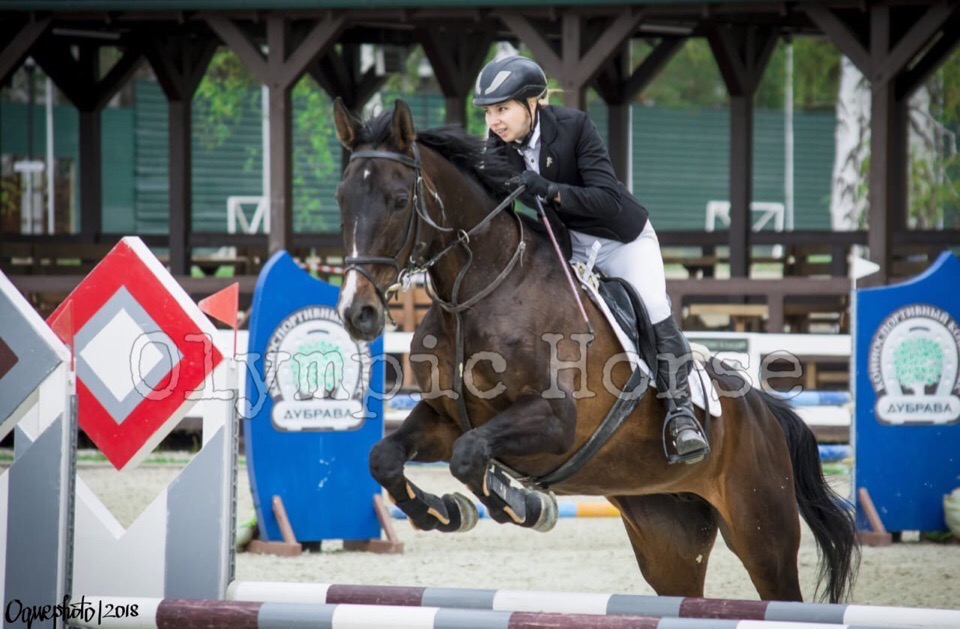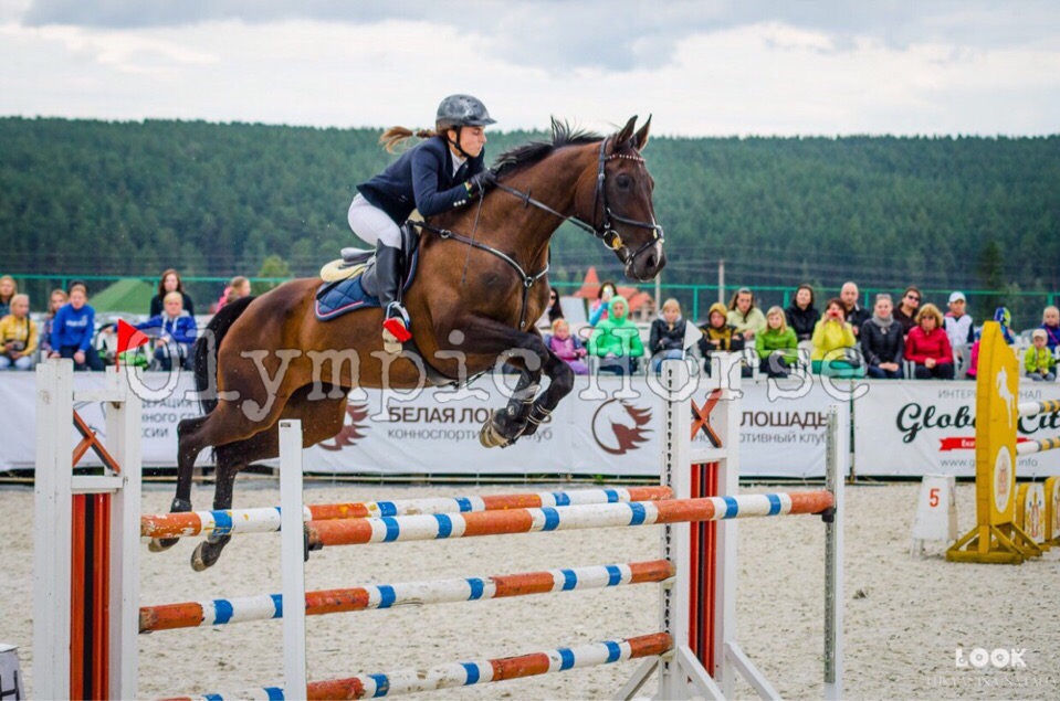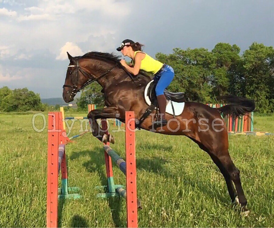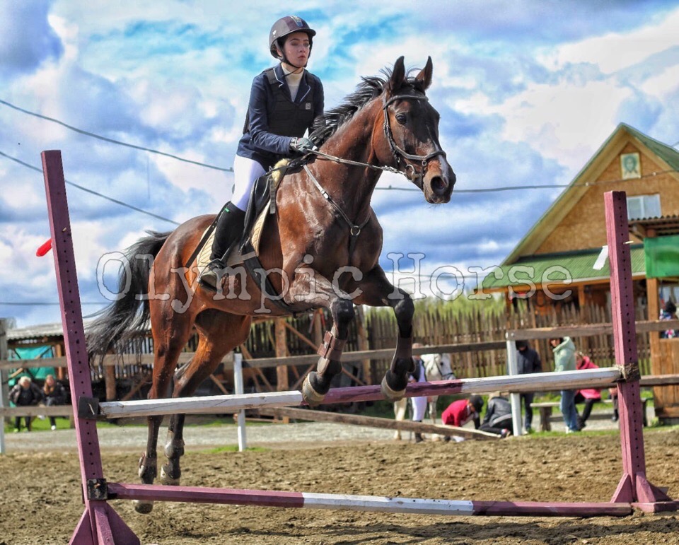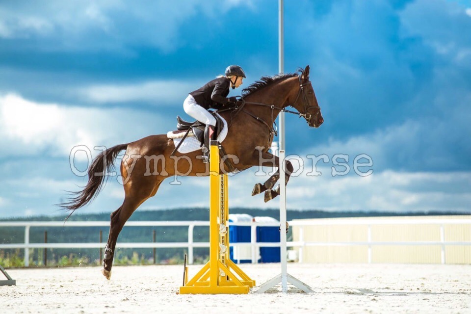 Прыгает троеборные препятствия. Прыжок техничный, силовой, сама считает, палки не бьёт