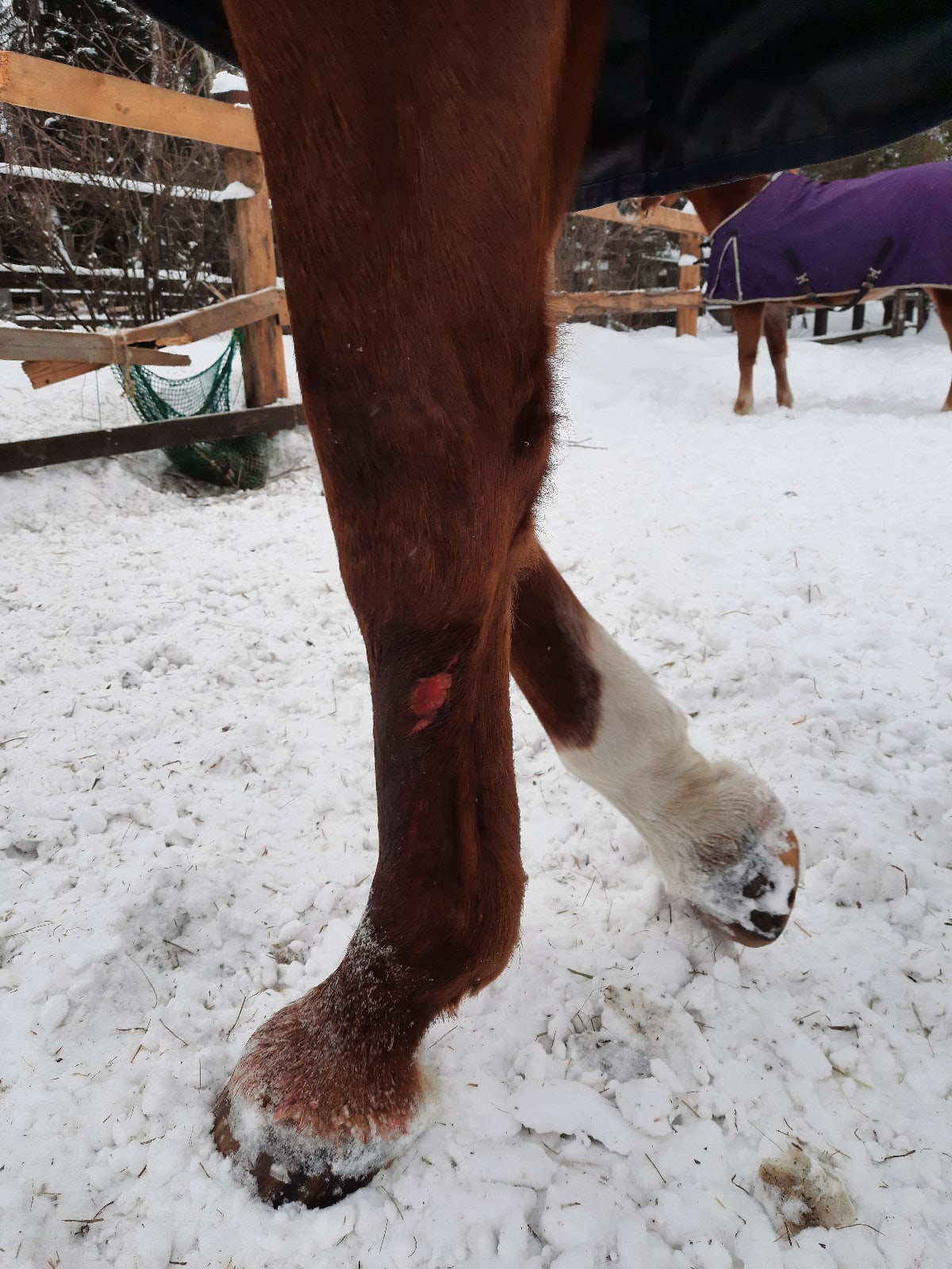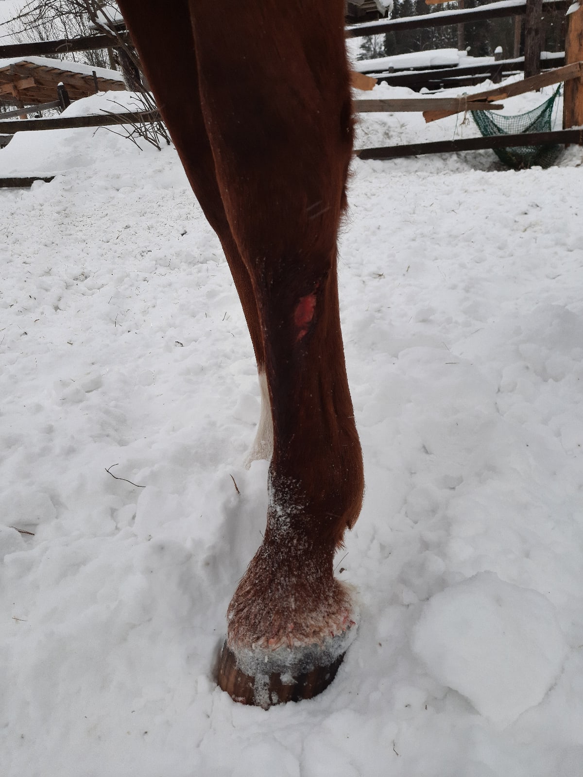 Нашу ногу я проверила первым делом - даже не переодевшись. Рана сухая, подзатянулась, но промыть и запускать не помешает, не отёчная. Но конюх сказал, что вчера небольшой отёк был.