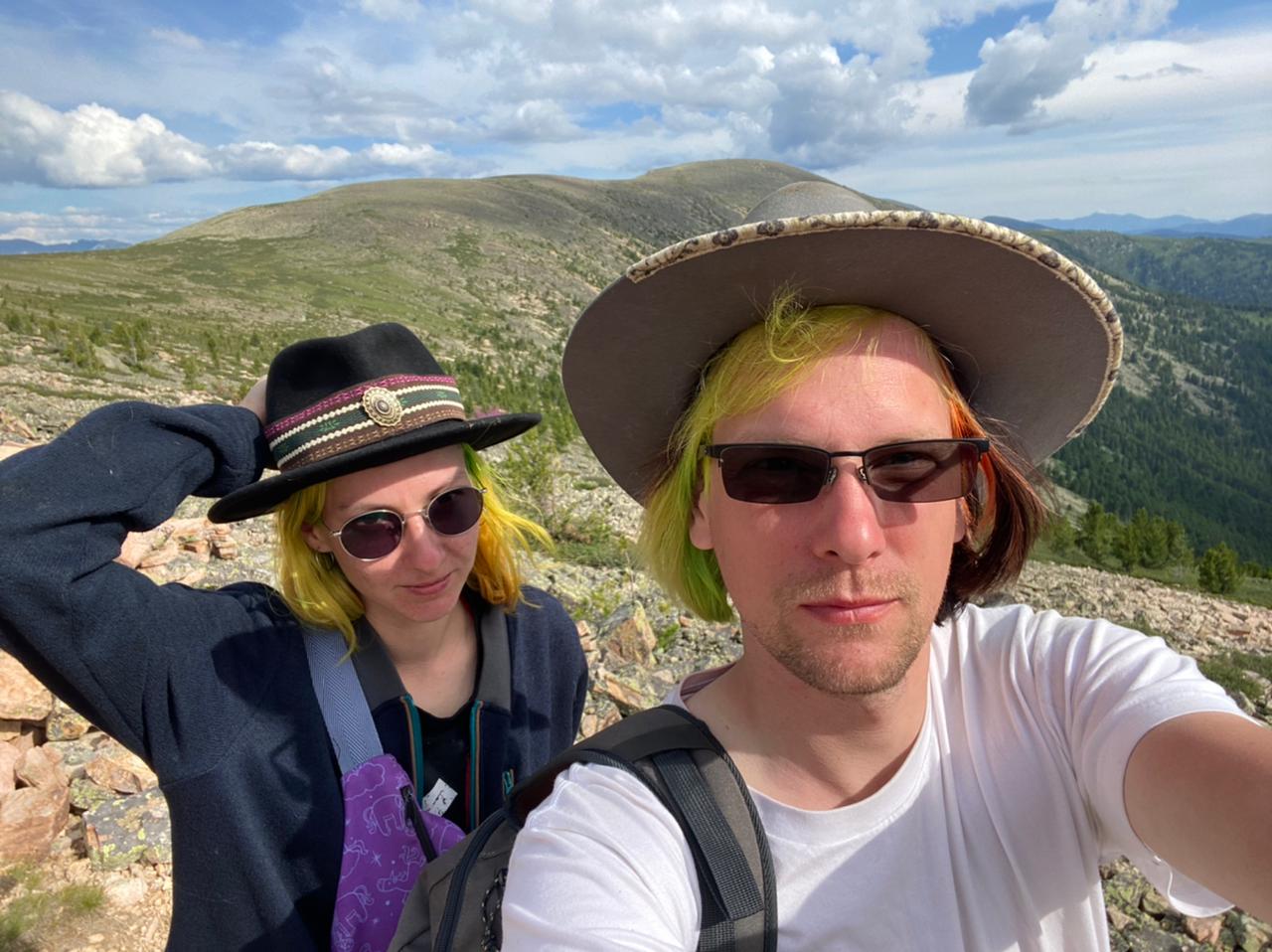 И мы успели, да. На спуске к реке у которой будет наша стоянка, нас смогла догнать вторая часть. Последними на спуске были мой муж, я и Даша. Когда Сева резко затормозил, мне тоже пришлось встать и подождать пока между нами вновь будет достаточная дистанция. Пока стояли Хобот решил сожрать немного растений, сзади Даша: "Не давай ему есть". Мой ответ был достаточно резким "Сама разберусь", для того, чтобы при первой же возможности Дарья уехала вперёд. Действительно на спуске просили не кормить коней, но я считаю, что если конь просто сорвал травки, находясь на досточно устойчивом место, то это не критично.