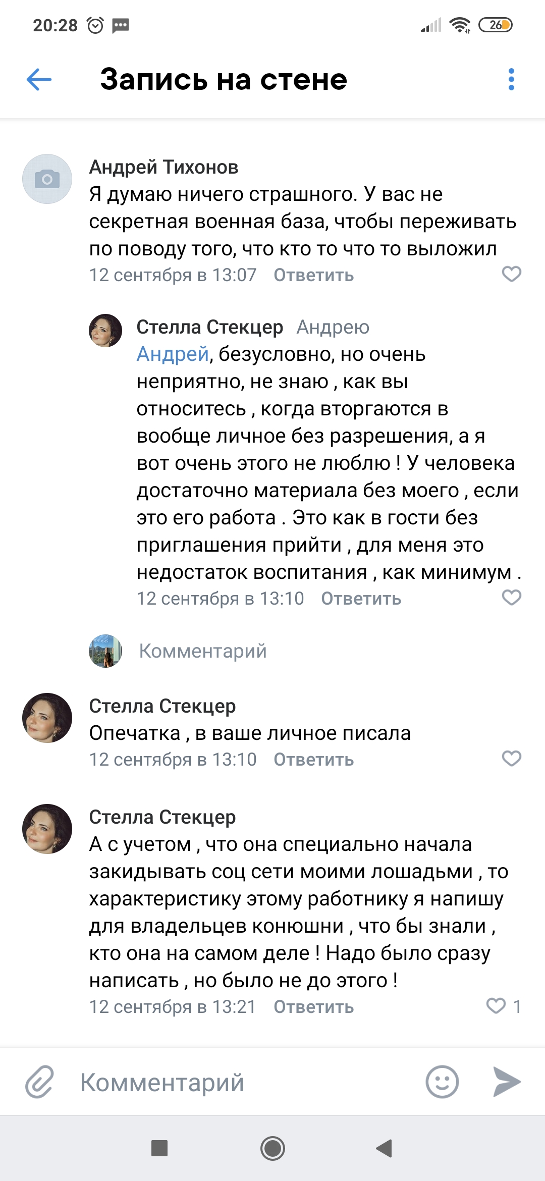 Я вам про мягкое , вы мне про тёплое , я очень рада , что вы идеальный работодатель , у вас прекрасная конюшня и сотрудники! Так как мы на разных языках разговариваем , кто виноват и что делать , видимо не про наш диалог !Заметила что-то непонятное для себя,что ее насторожило и она отправила Вам сообщение.