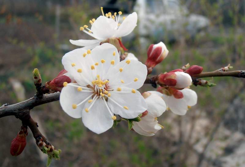 Прошло всего 10 дней (и тёплых ночей), первый же визит в огород принёс массу удовольствия. И никто ничего не украл (всю зиму забытая лопата проторчала посреди поля), и земля хорошо пропиталась большим снегом, и абрикос зацвёл... Смотрите. Как жалко, что я не могу передать запахи!