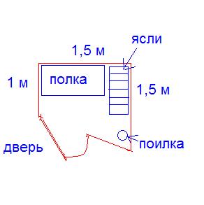 1,5 на 1,5 не котедж, конечно, но по-моему вполне. У бабушки в сарае были построены 2 "денника" для двух коз примерно по метру в ширину, правда мы летом почти все время на выгуле были.