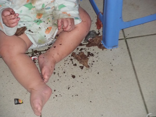 ЧТО он съел до чая - не знаю, тихо было минут 10, я что-то поздно спохватилась. Но без последствий. Зато коровье молоко - яд, ога...