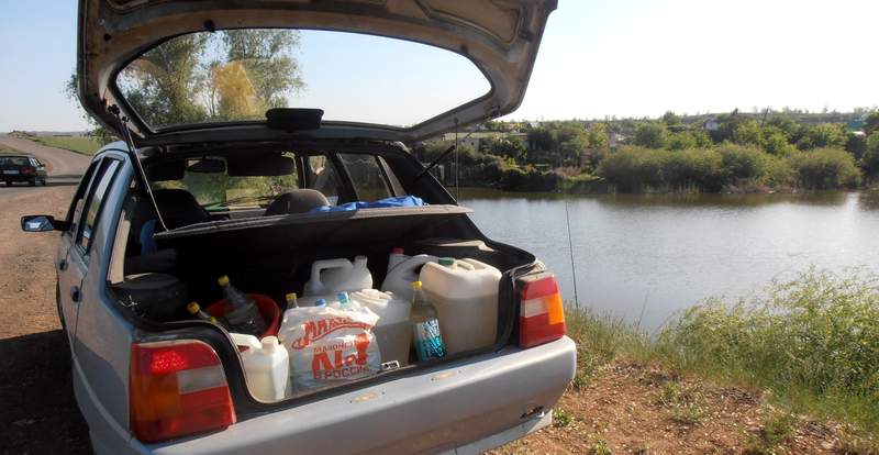 Летом у нас были проблемы с водой и не было дождей. Рассаду спасали водой из канистр, которую возили из ближайшего озерца.
