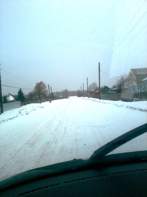 Вот так вот там, зима-зимой (деревня не наша, соседняя, а вот лес уже илебниковский). На дороге - ледовая колея, Гетцу по брюхо. Когда я снимала кадр через лобовое стекло, меня в ней подбросило и развернуло, хорошо хоть скорость была км 15-20, не больше. :mrgreen: Поэтому второй кадр я сделала, благоразумно остановившись и выкарабкавшись на дорогу.