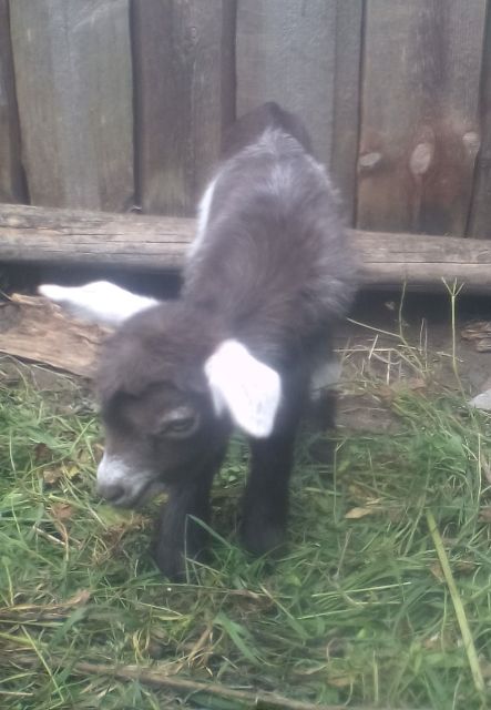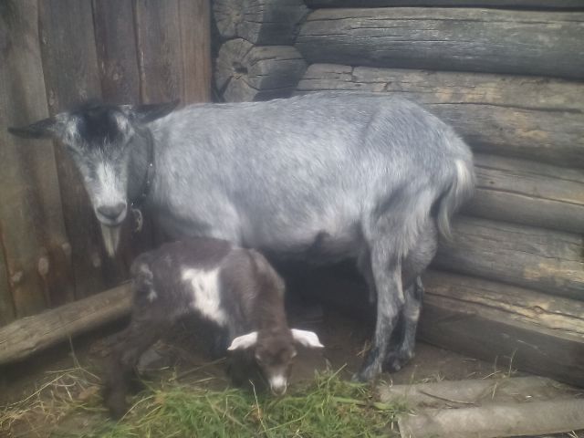Я долго не верила, что это нечто родилось одно - у Мыши был такой пузень, шевелившийся столь грозно, что мне мнилась по меньшей мере тройня. Мало того, у меня уже был срочный заказ на козочку, и когда у Мыши вместо ожидаемого следующего козленка полез послед, я глазам своим не поверила, и начала ворошить подстилку, в полной уверенности, что либо я просмотрела, либо она спрятала где-то второго отпрыска. Но увы! Так и вхожу к ней каждый день с вопросом: "Мыша-дура, где коза? запихивай этого обратно, давай мне козу!"