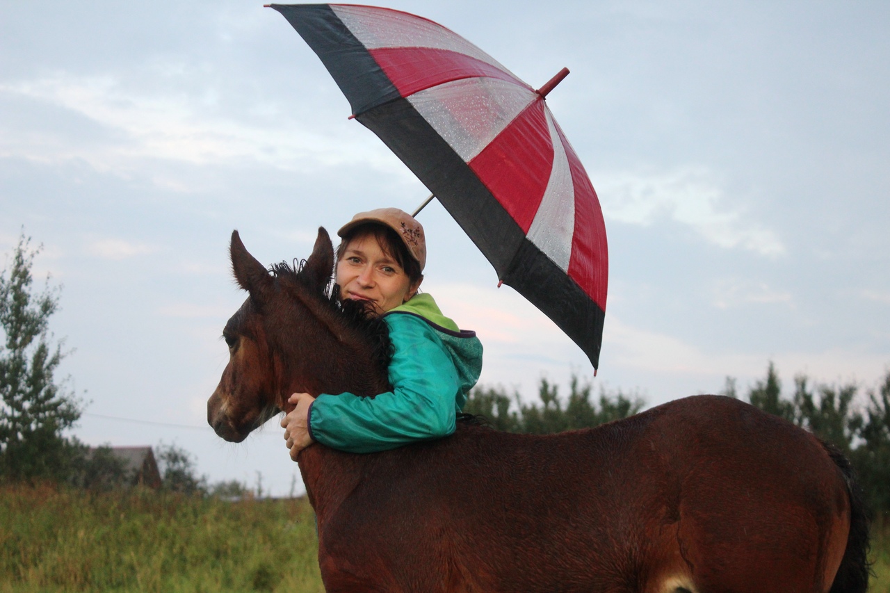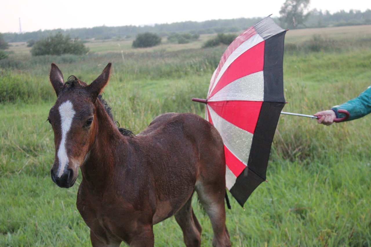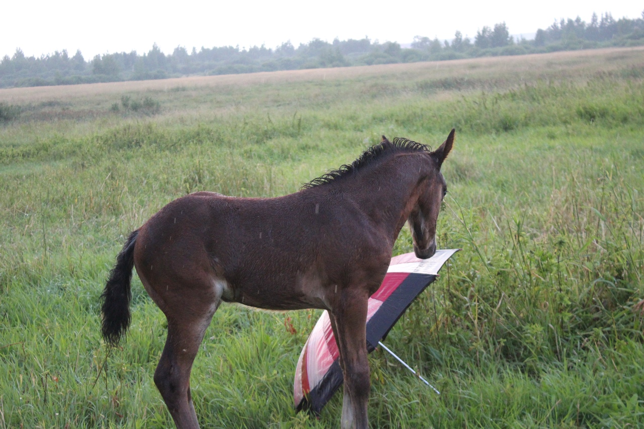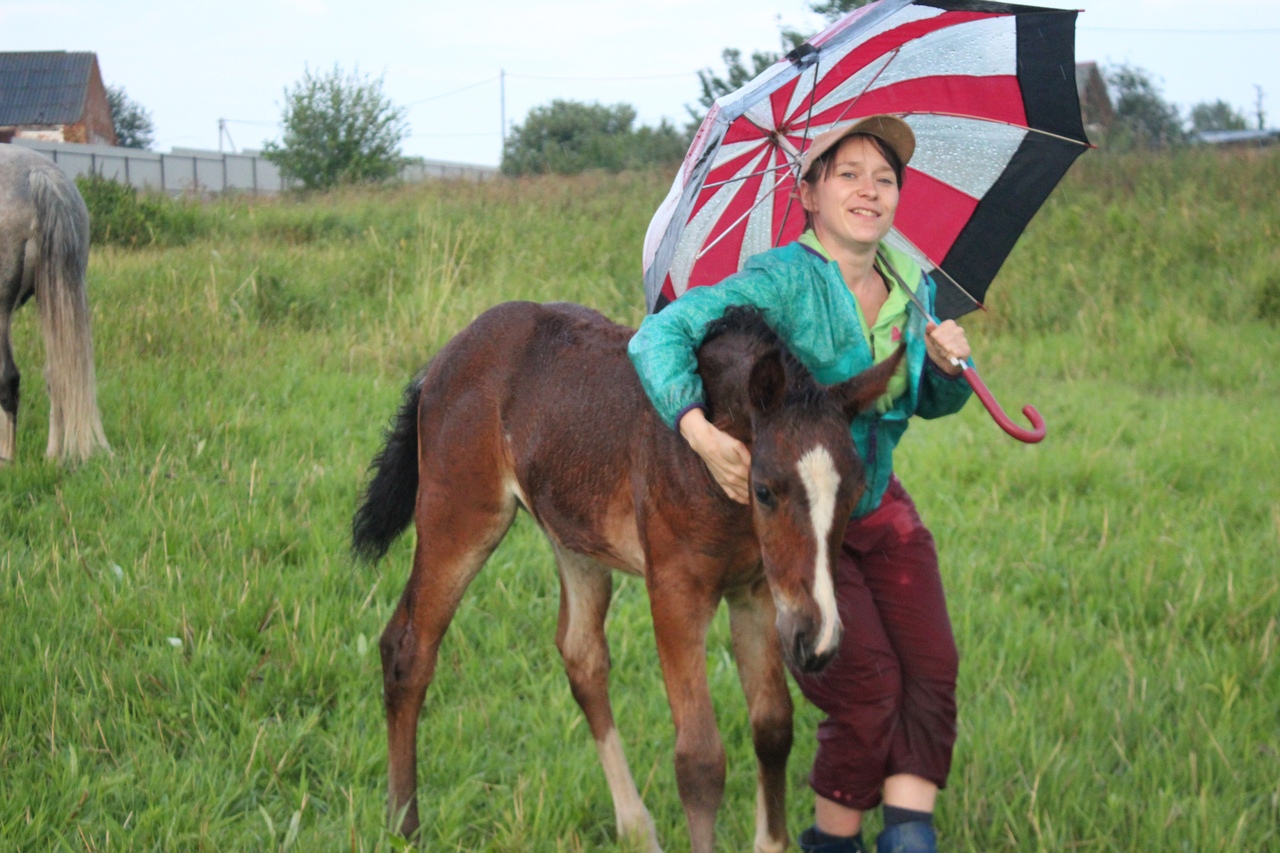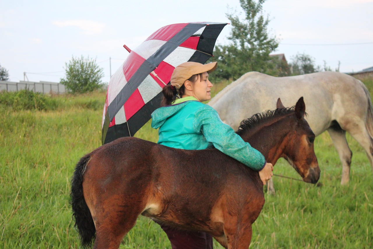 И всё бы хорошо, да началась гроза. Мы когда ехали на конюшню, я видела, что небо затягивает тучами, но по прогнозу над Ушерско обещали дождь на пару часов попозже, поэтому я надеялась, что обойдет стороной.