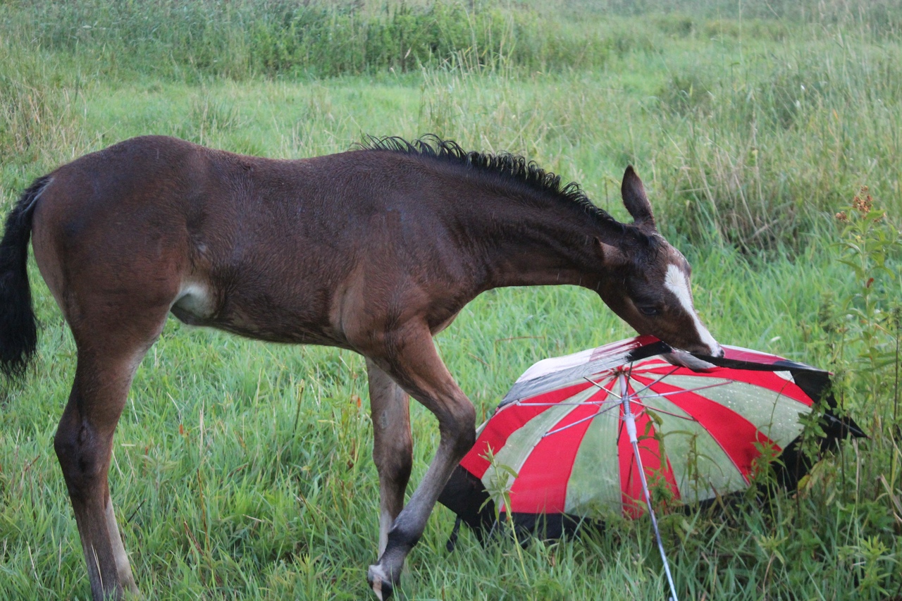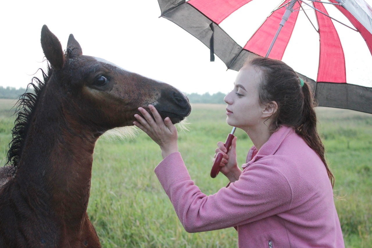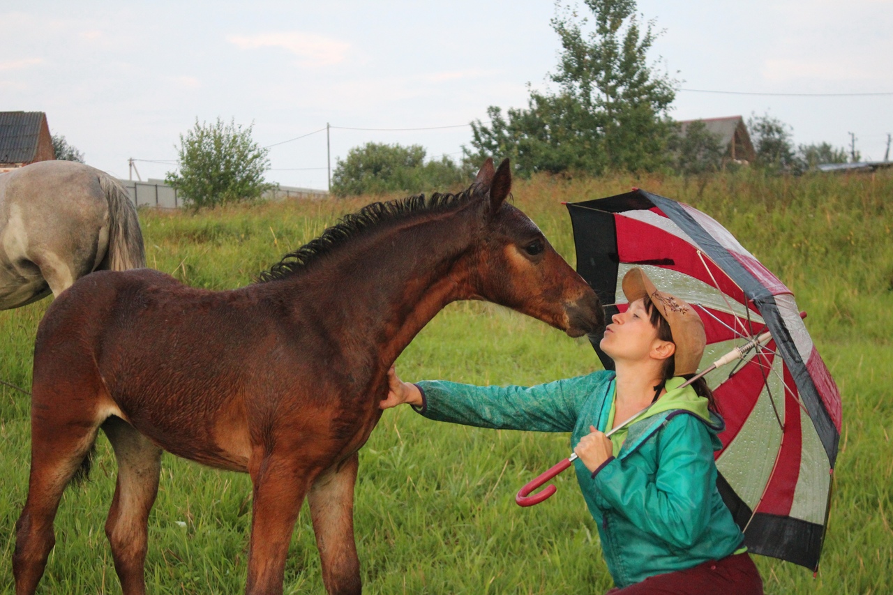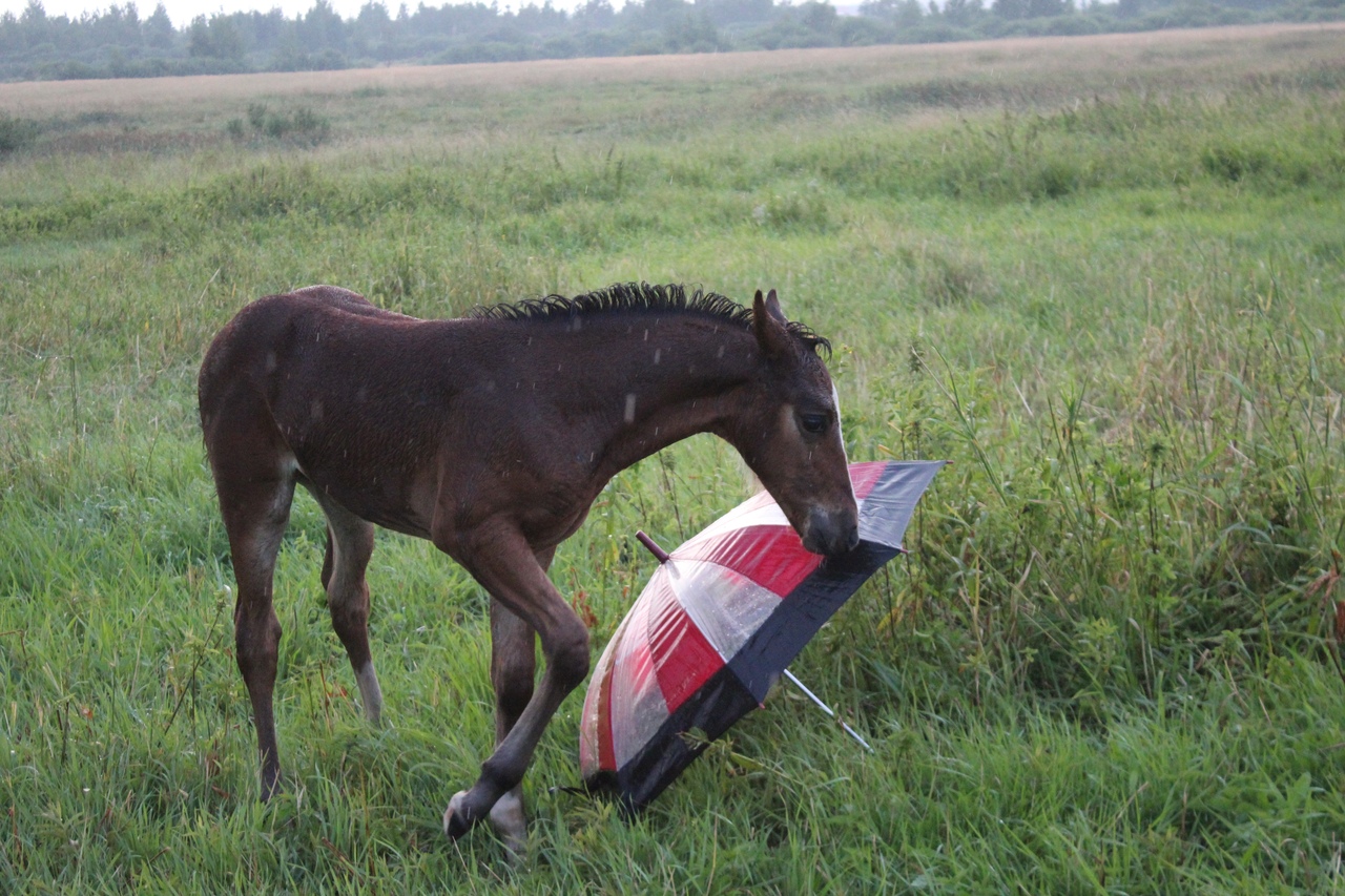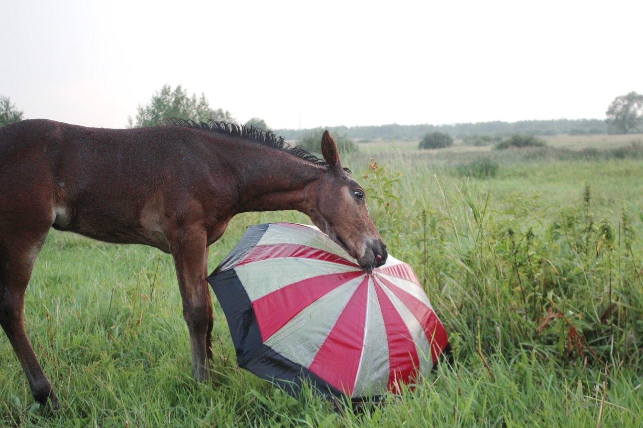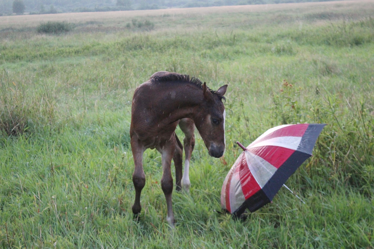 И всё бы хорошо, да началась гроза. Мы когда ехали на конюшню, я видела, что небо затягивает тучами, но по прогнозу над Ушерско обещали дождь на пару часов попозже, поэтому я надеялась, что обойдет стороной.