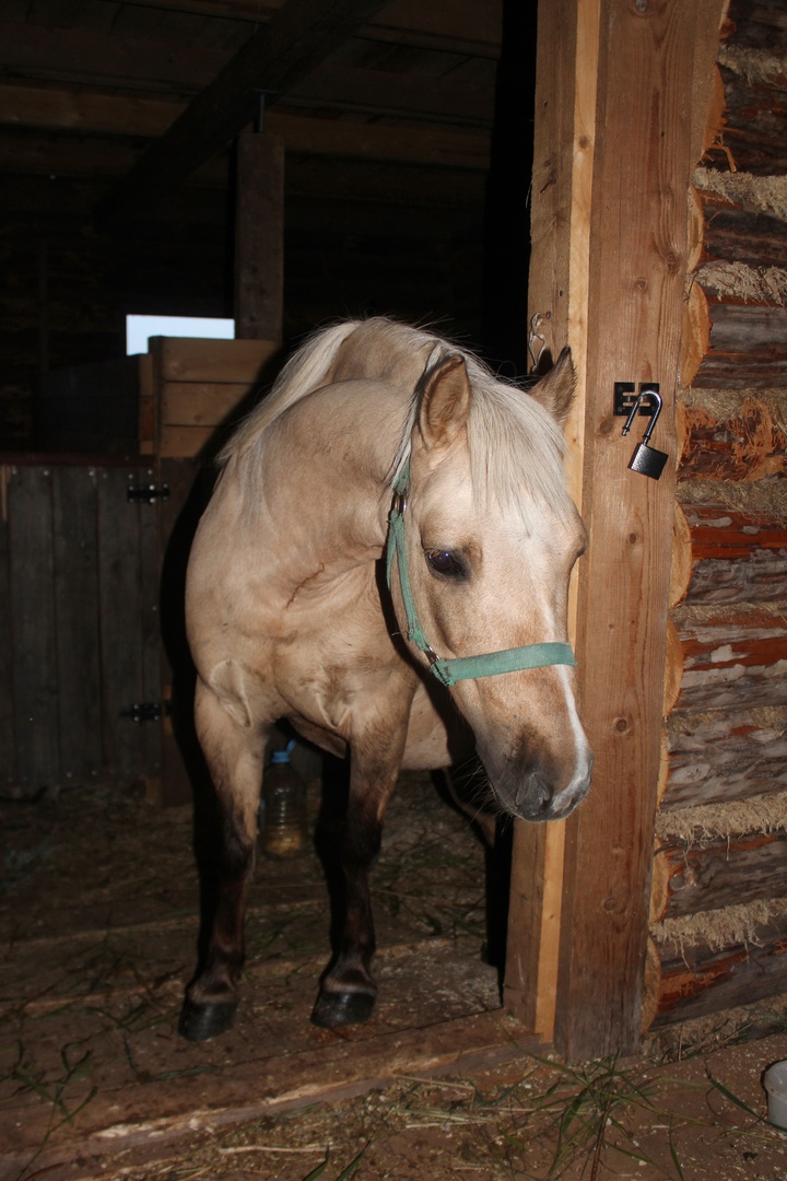 Специально повезла с собой на конюшню маму, чтобы она встретила коней у конюшни. Они сами встают по местам. Главное их закрыть.