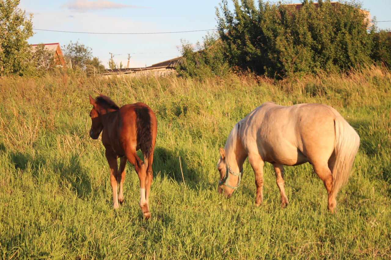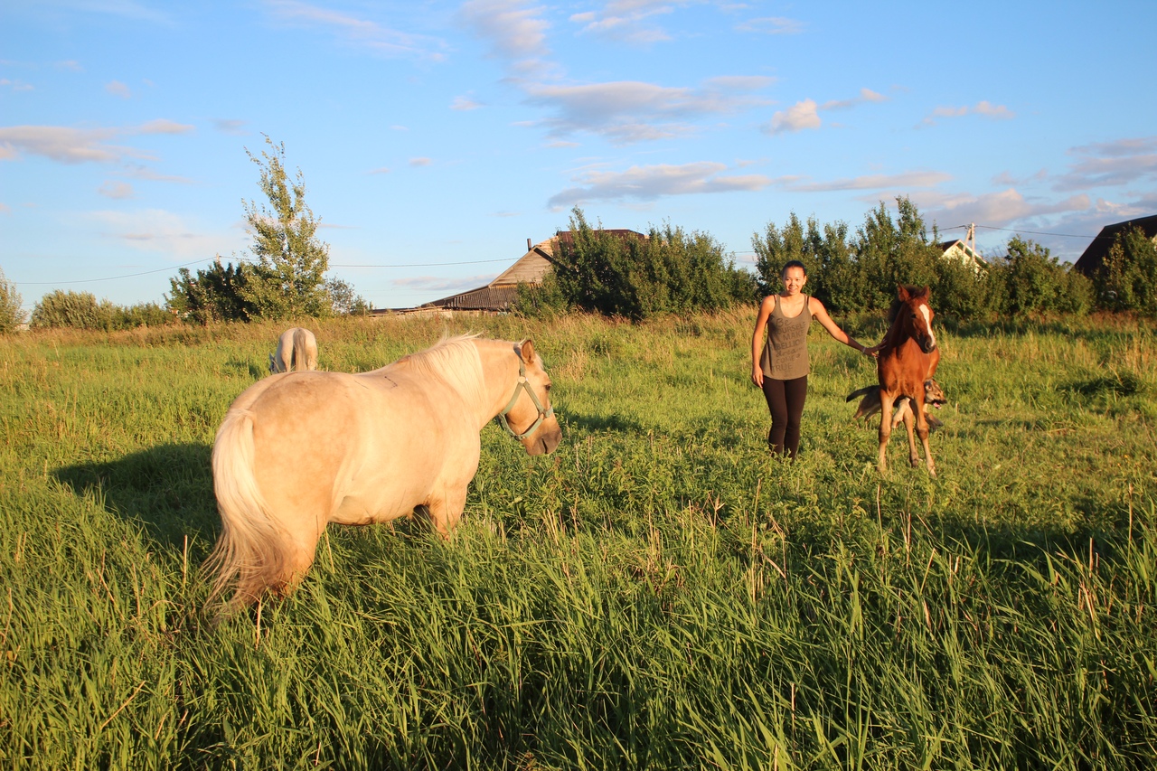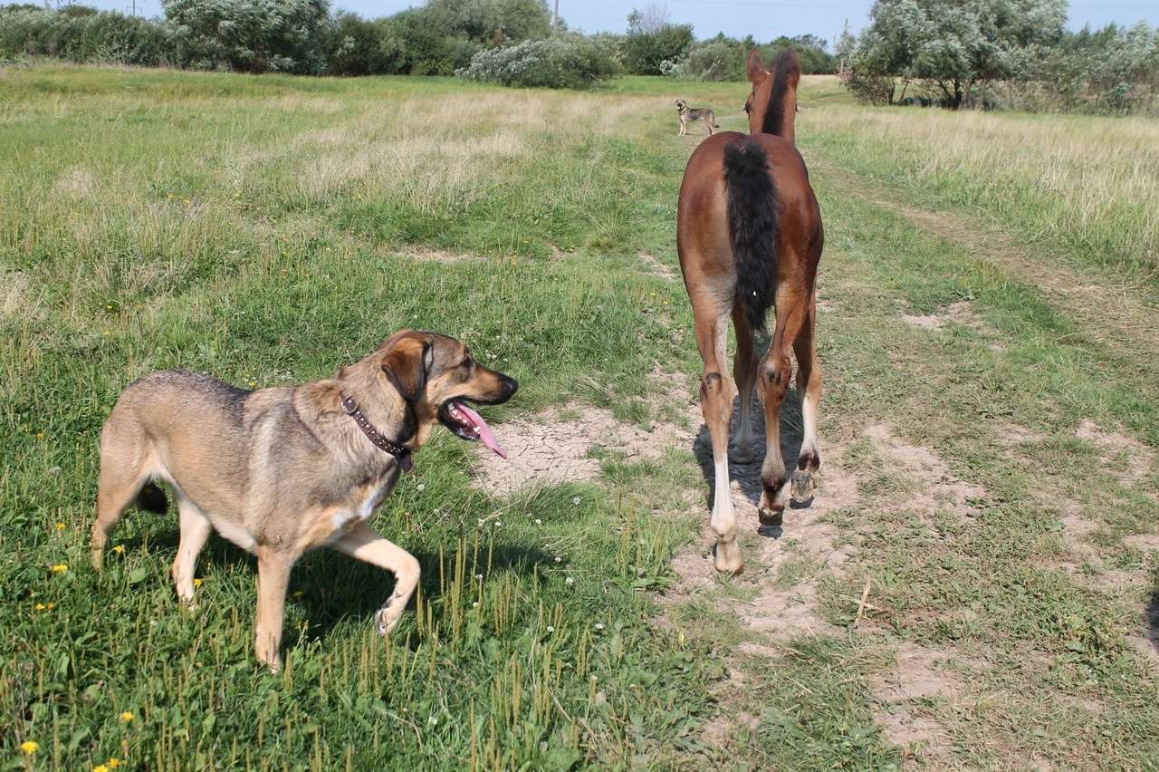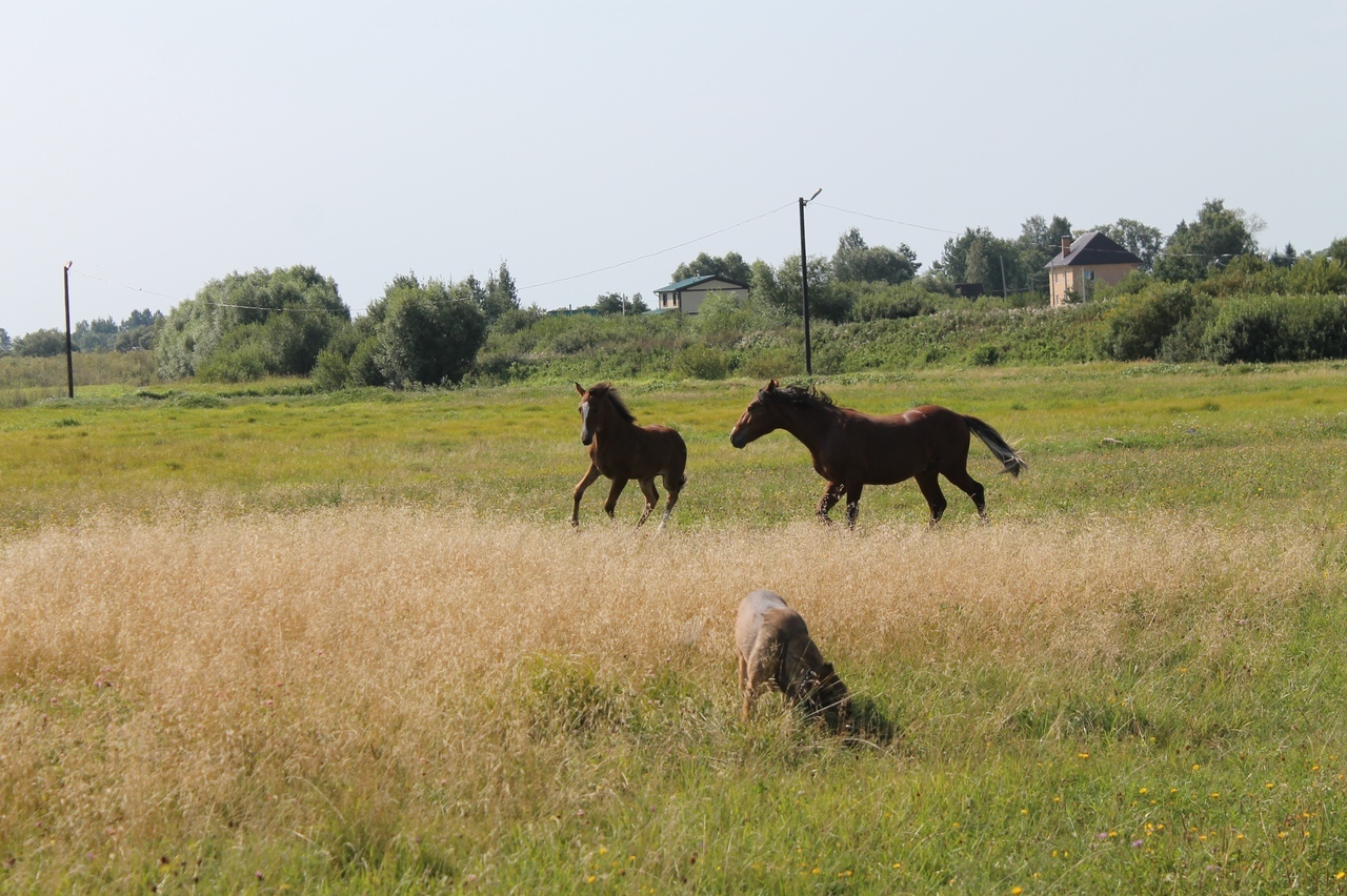 Жеребята и собаки набегались вдоволь, у собак так вообще языки были набок. Было очень жарко, а суровые хозяйки Катя и Юля запрещали собакам залезать в воду (в пруд), т.к. собаки прямо как королевишны, ездят в авто на сидениях )) Хорошо, у меня Айра лежит в ногах на коврике, я не заморачиваюсь, что она у меня каждый день в болоте валяется...
