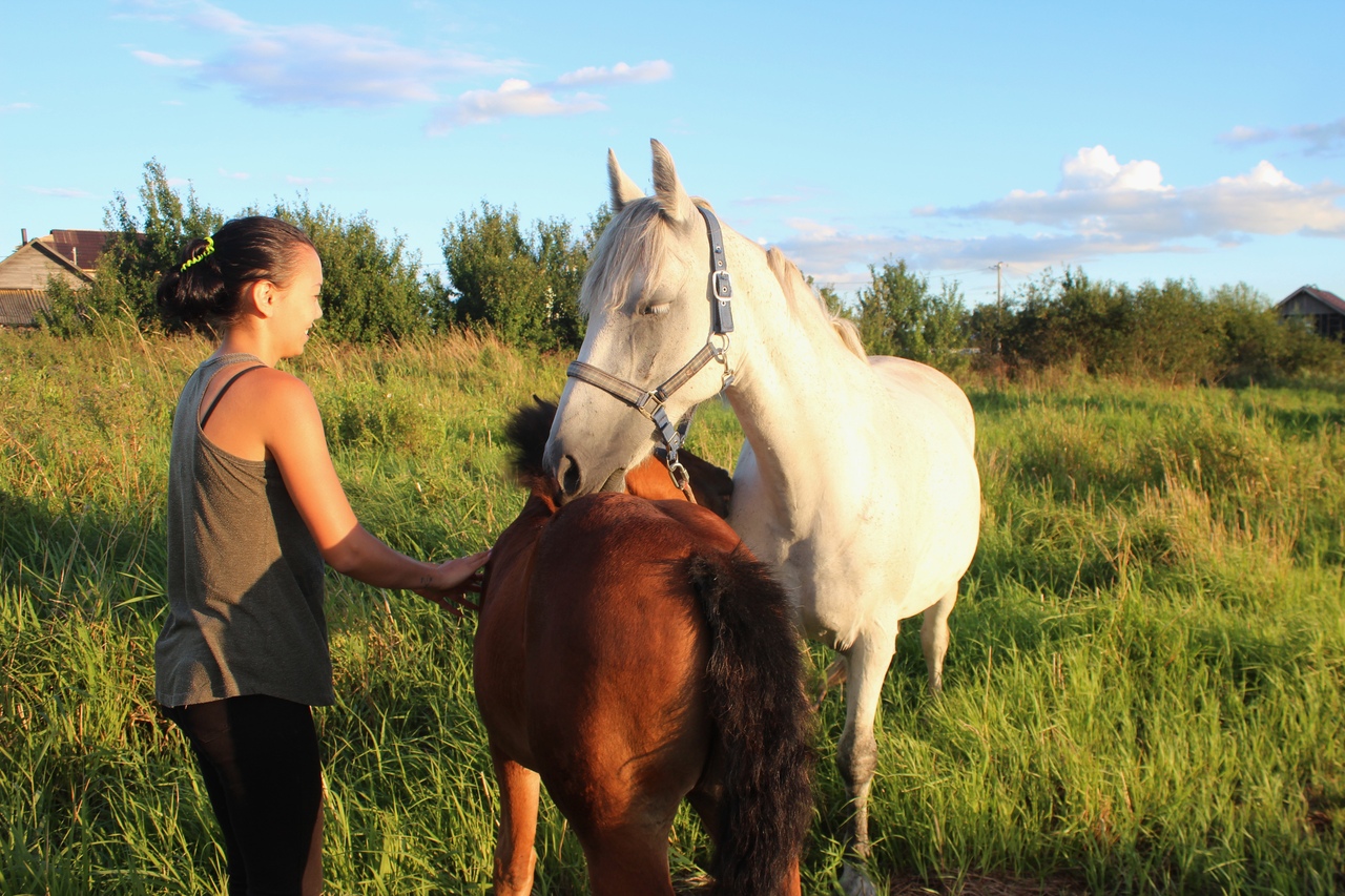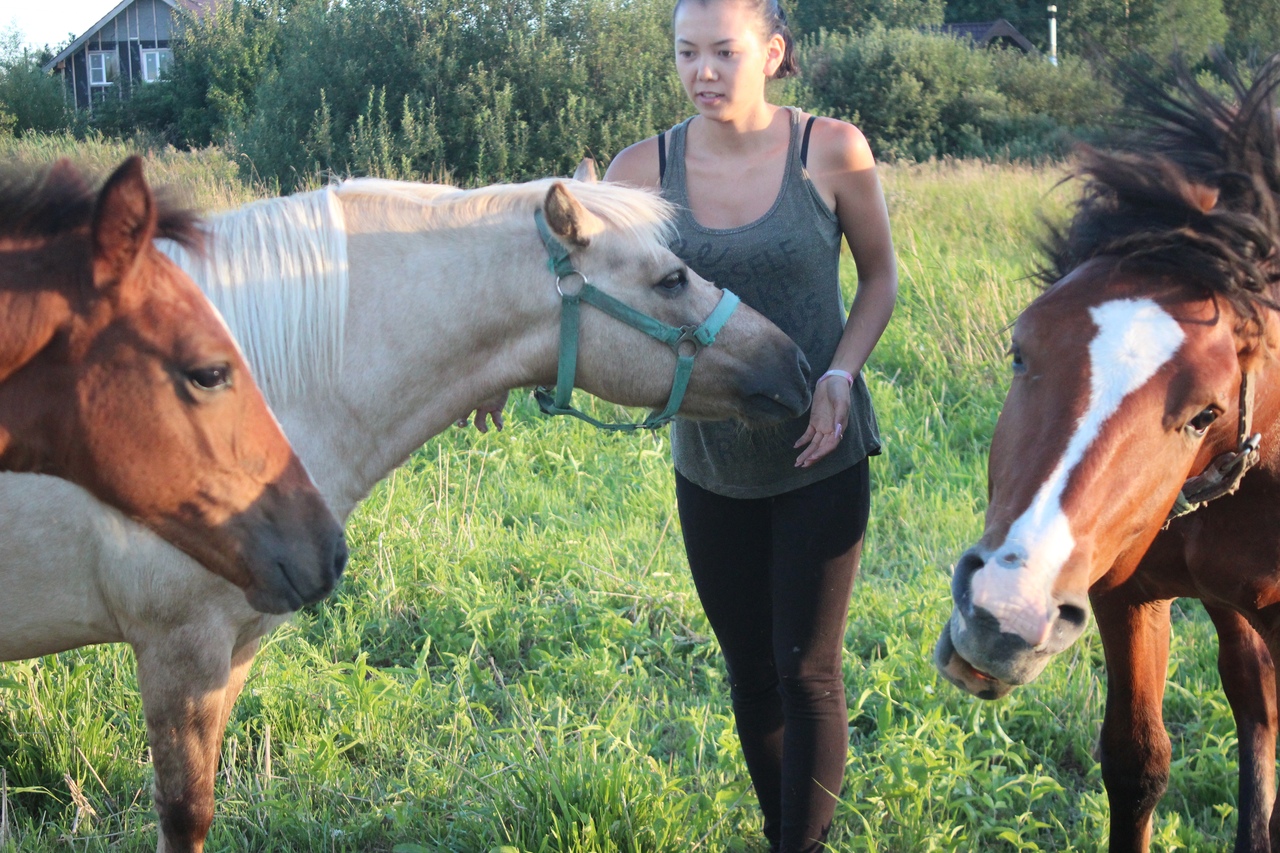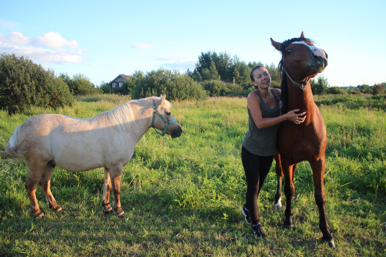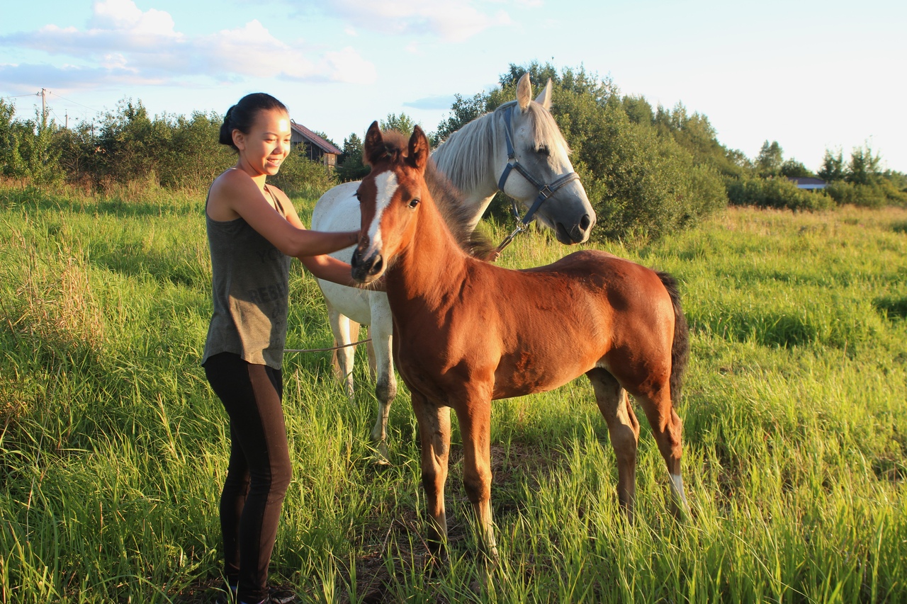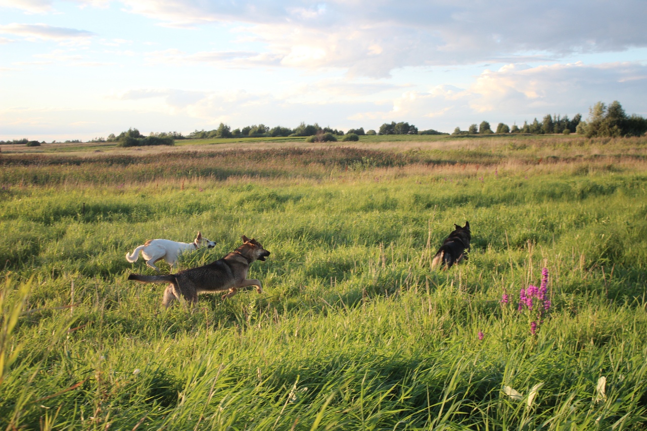 Жеребята и собаки набегались вдоволь, у собак так вообще языки были набок. Было очень жарко, а суровые хозяйки Катя и Юля запрещали собакам залезать в воду (в пруд), т.к. собаки прямо как королевишны, ездят в авто на сидениях )) Хорошо, у меня Айра лежит в ногах на коврике, я не заморачиваюсь, что она у меня каждый день в болоте валяется...