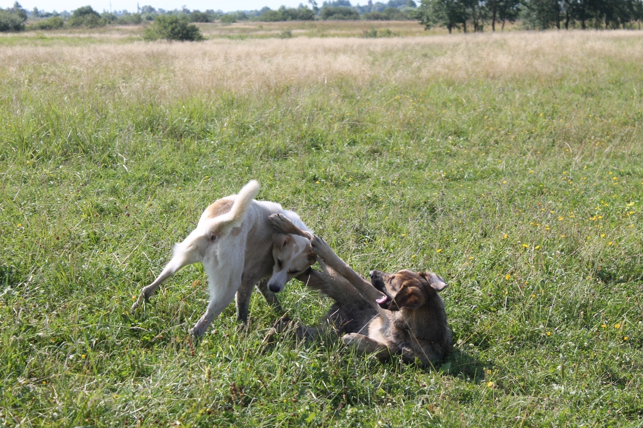Также с удовольствием принимает участие в лошадиных игрищах, за что неоднократно уже поплатилась... И Гобой, и Алиса несколько раз уже пробегались по Боньке, так, что она визжала дурным голосом. Я была уверена, что на этот раз точно они что-нибудь ей сломали ((( Но нет, пока бог милует.