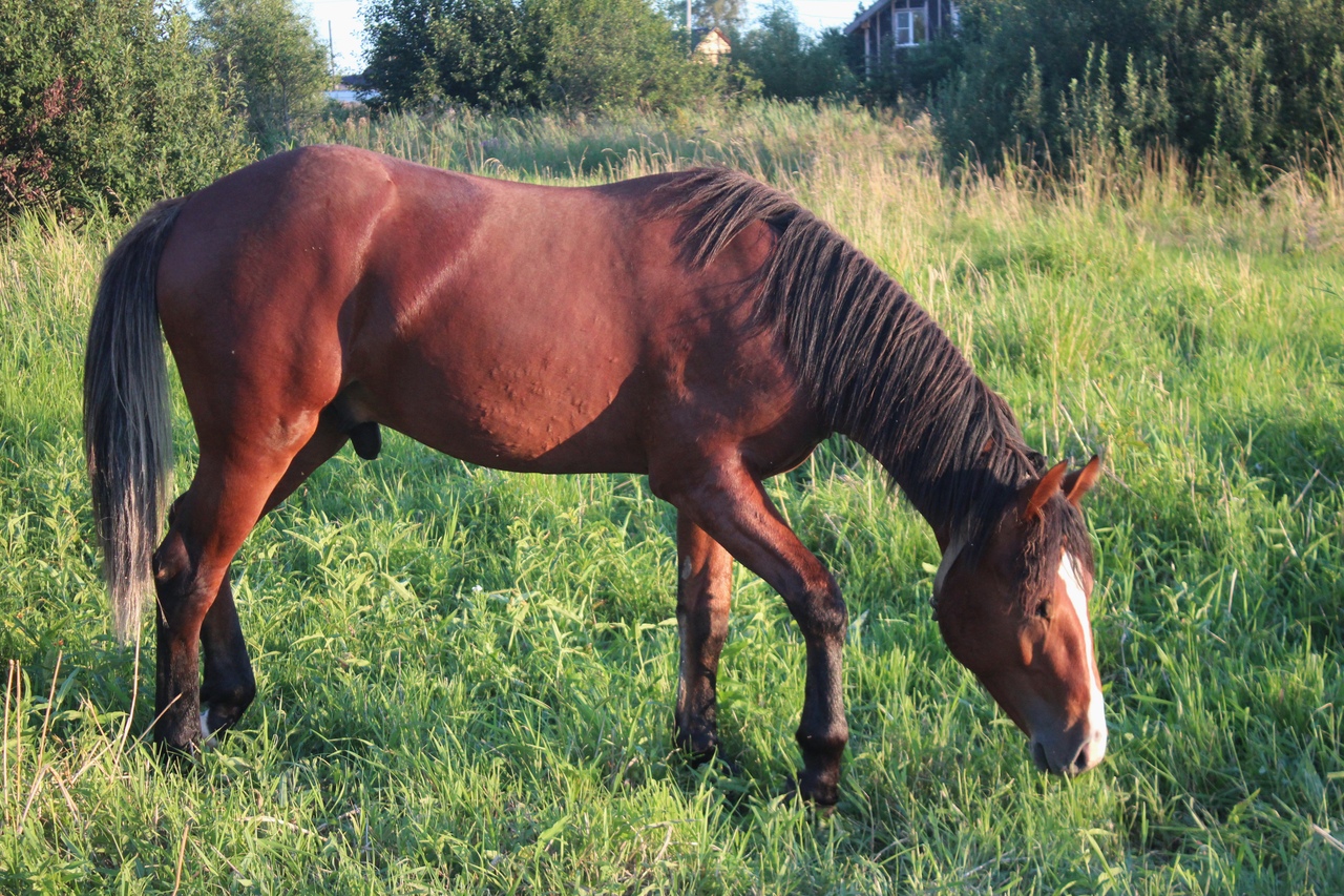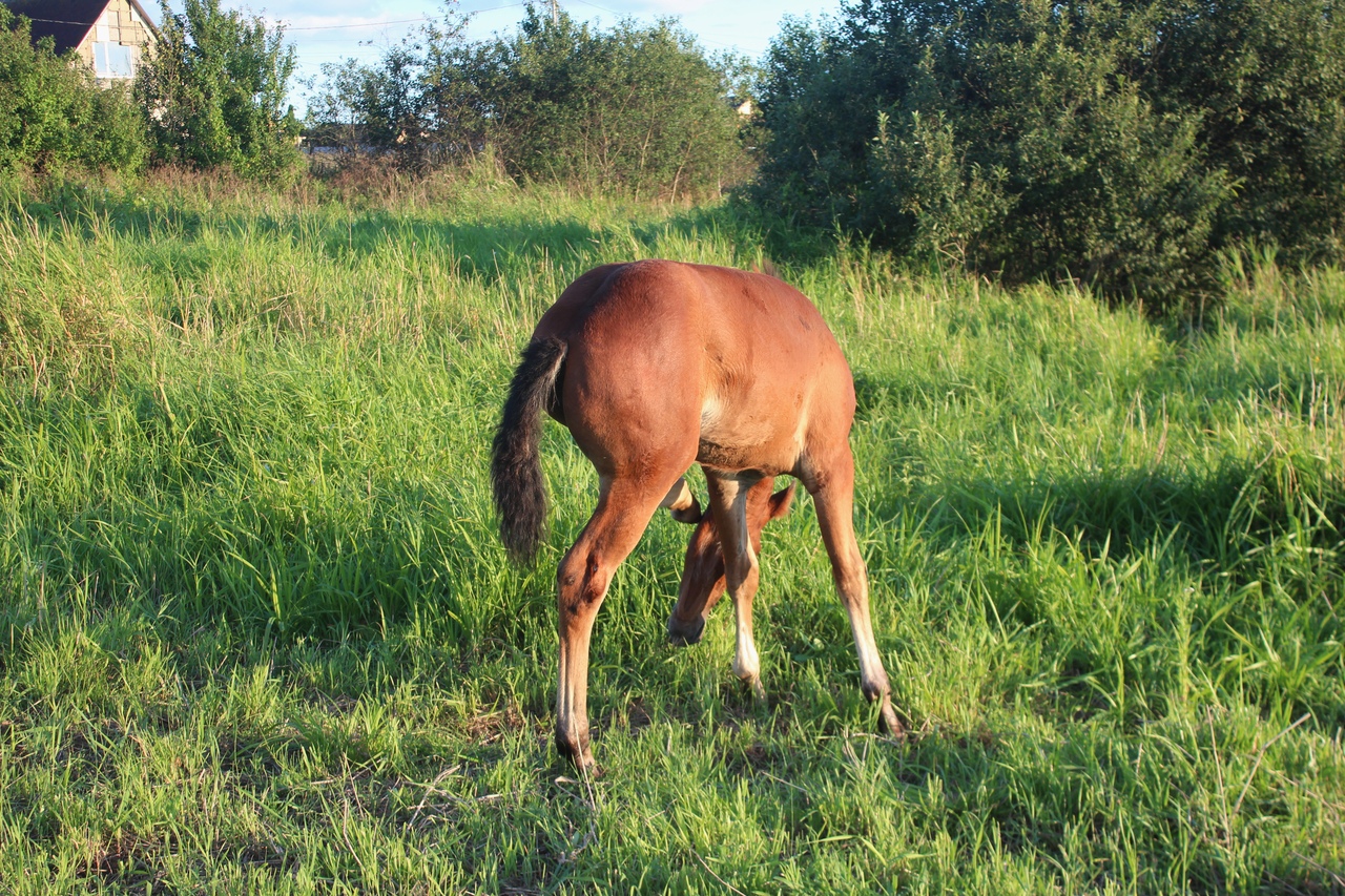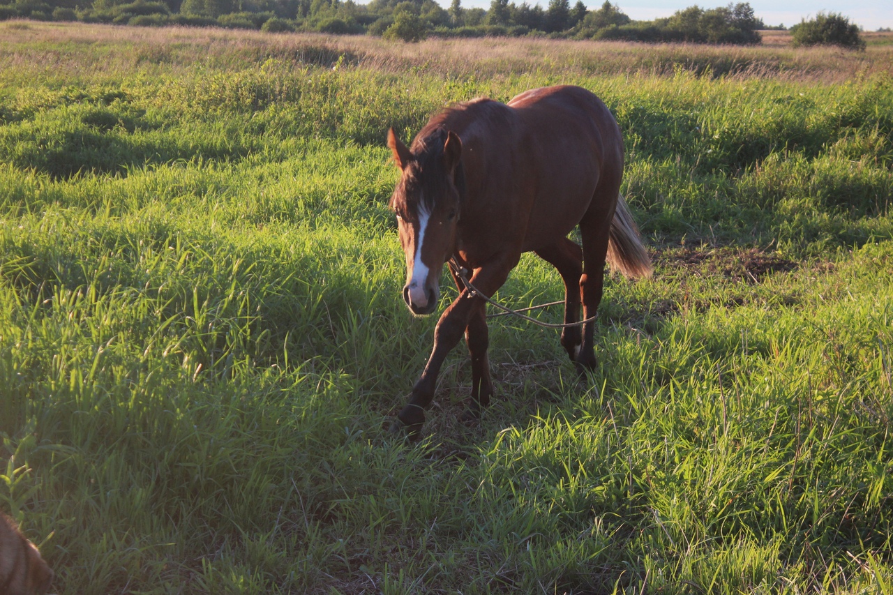 Отпустили Гобоя с верёвки (паслись сегодня рядом с конюшней, я не стала рисковать неогороженным участком соседа и привязала всех, кроме Алисы)