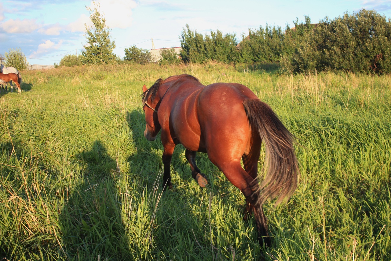 Пора мне завязывать с похождениями с прокатом. Тяжело на жаре. Алиса сегодня отличилась - толкнула меня, налетела сзади. По высокой траве, я не слышала, как она приближалась. Обычно быстро реагирую и успеваю отпрыгнуть. Я упала на руки, но сотряс всё равно был, связки заныли в животе, и малыш сильно закопошился (((