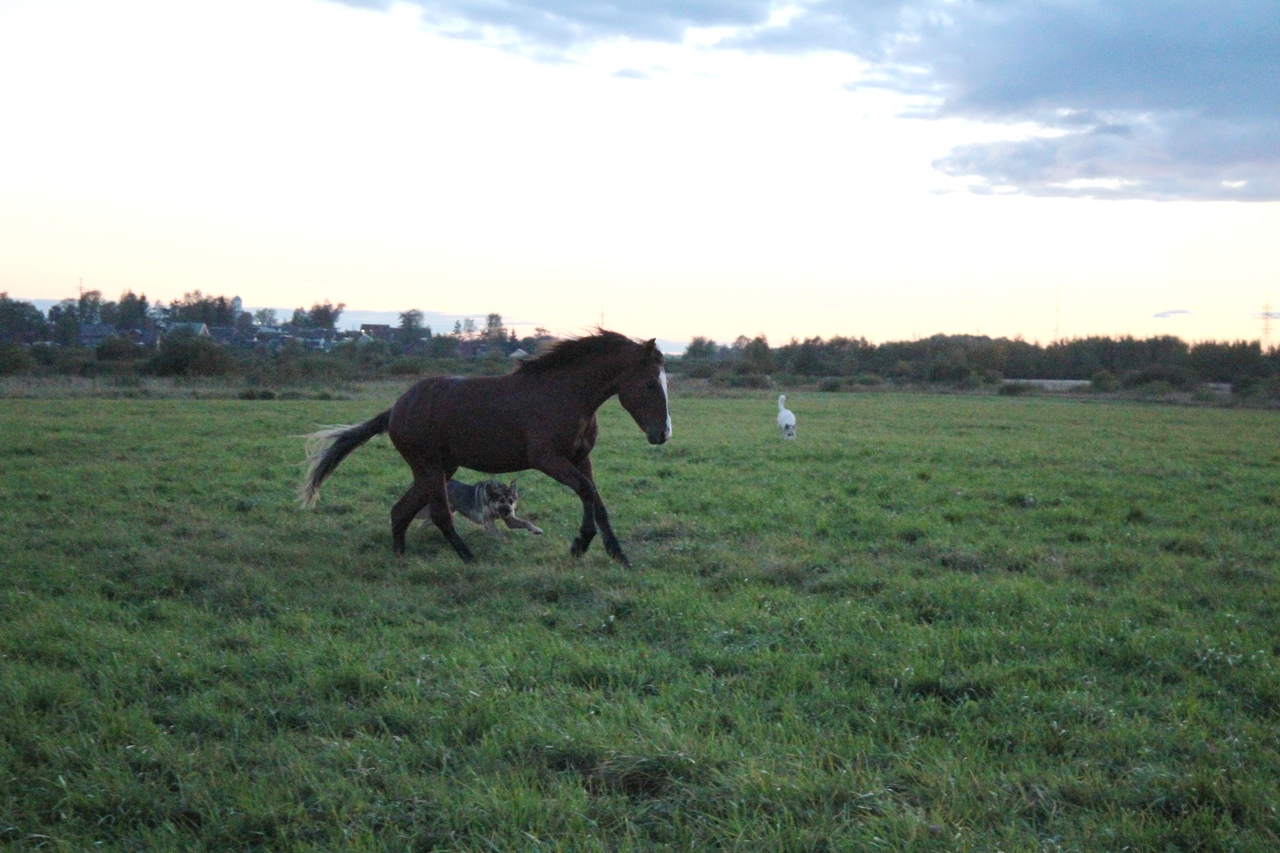 Он с явными претензиями на верховую езду. Полезет на Герду, свалится, не дай бог, спину себе сломает (и лошади