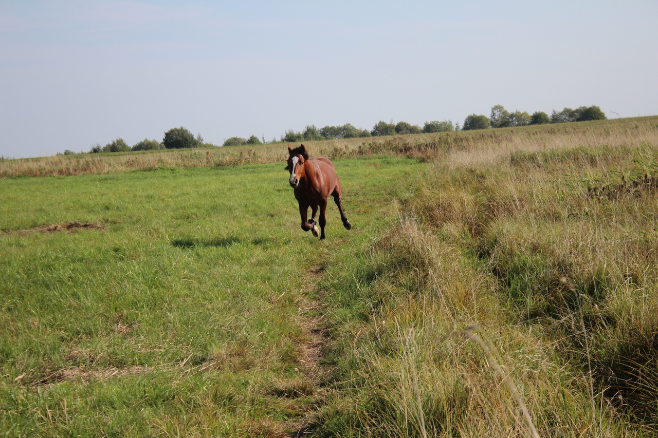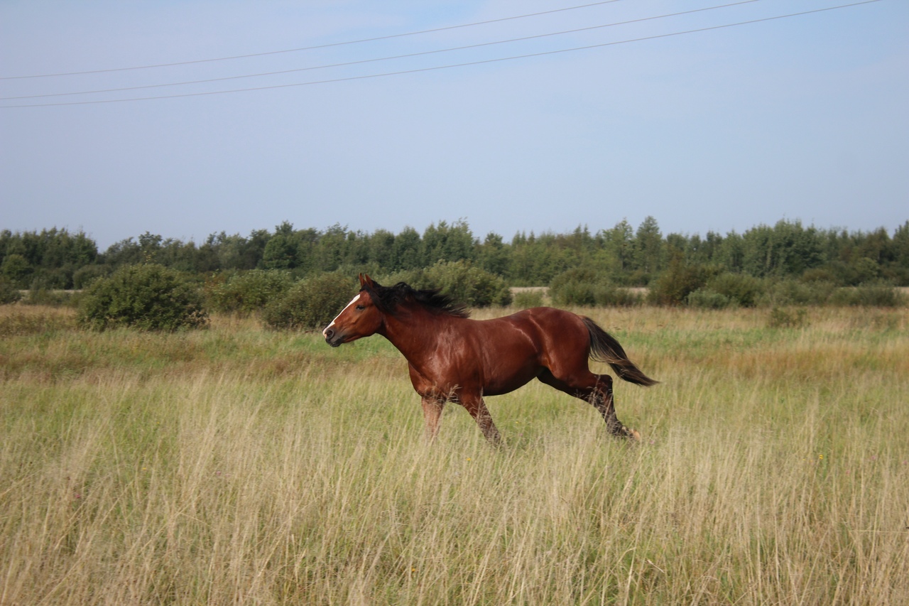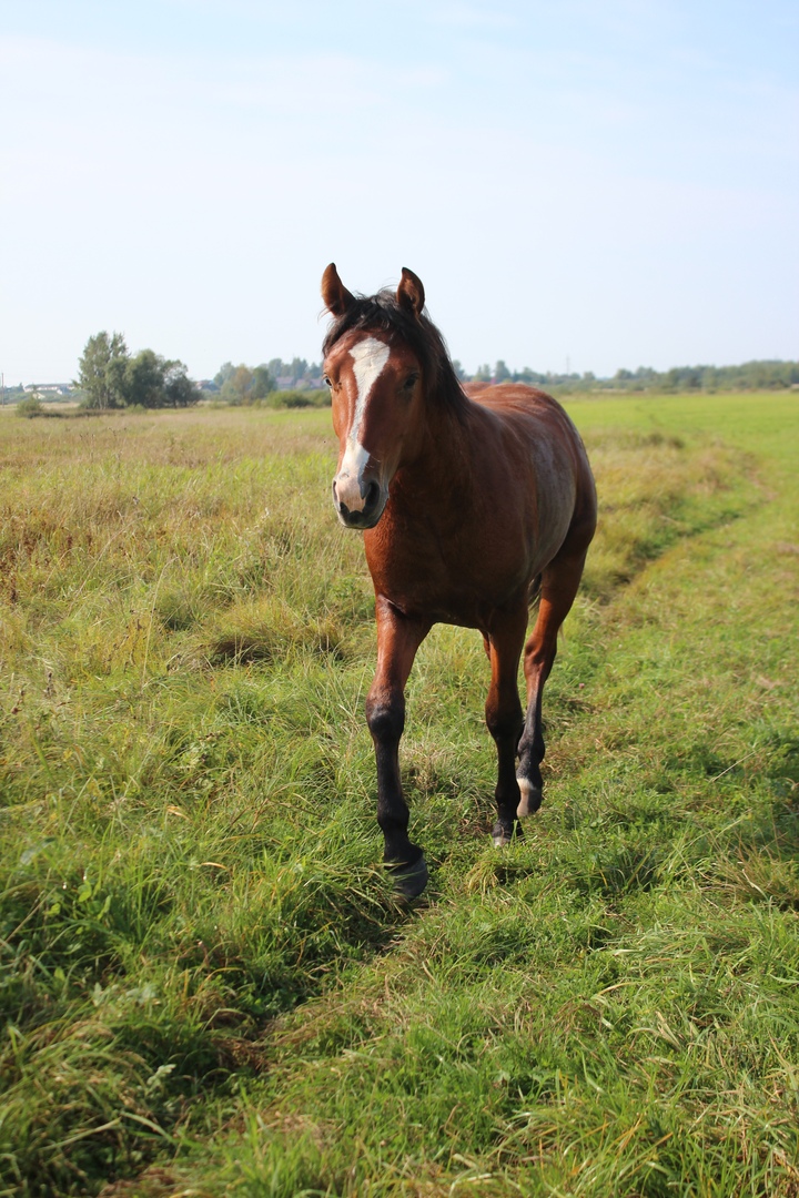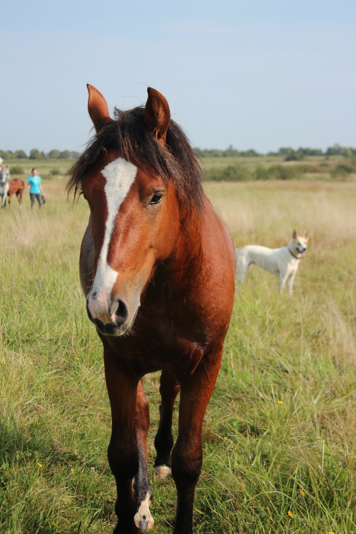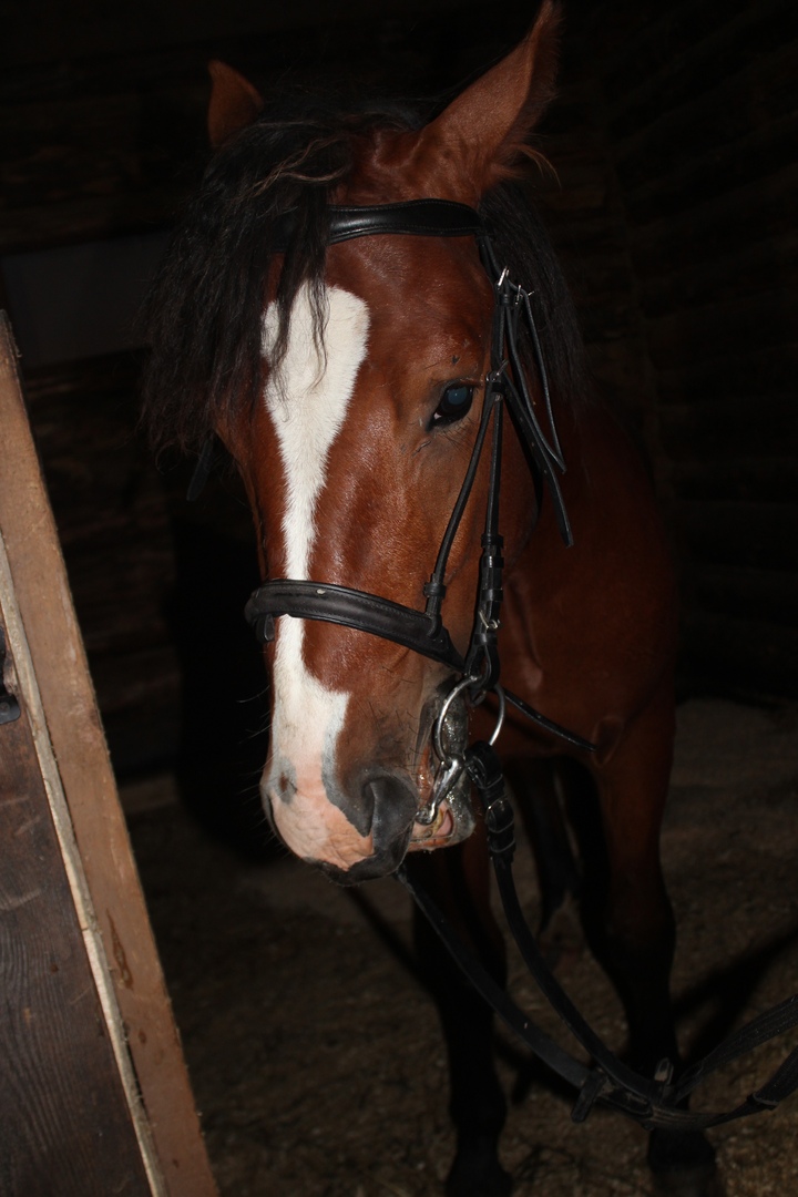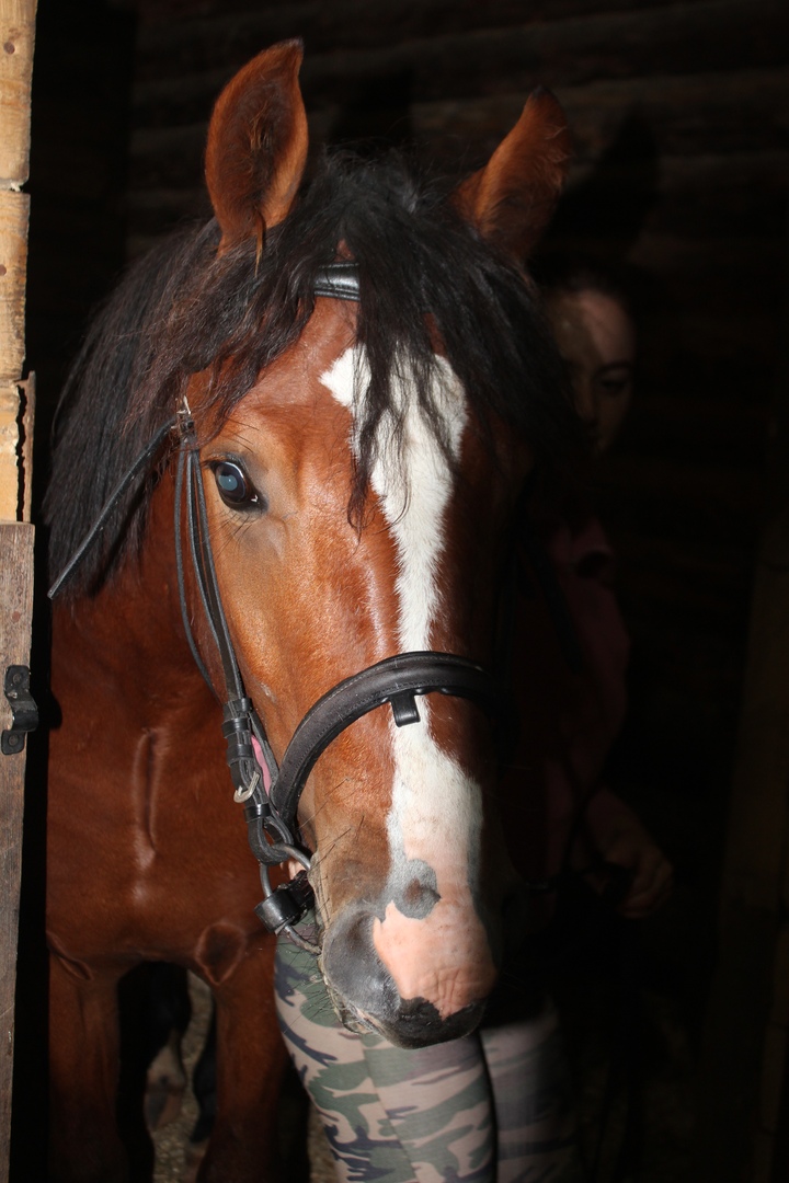 Вчера второй раз надела на Гобоя уздечку. Прогресс в работе над конём