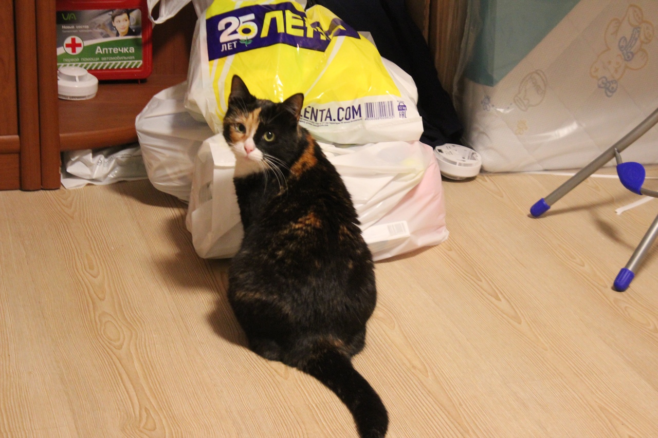 Приключения продолжаются. Как слегла я в роддом, началась котовасия с моими животными. Вчера бабушка умудрилась потерять кошку (Тому, трехлапую). Поехала с утра на дачу, торопилась, т к в машине ждали мои родители. Не заметила, как Тома выскочила вместе с ней из квартиры. Пока закрывала дверь, Тома спустилась на пролет ниже и залезла на подоконник с цветами. Бабушка прошла мимо, подумав, что это соседская кошка. Та тоже чёрная, круглоголовая такая же, только гораздо худее и с четырьмя лапами...