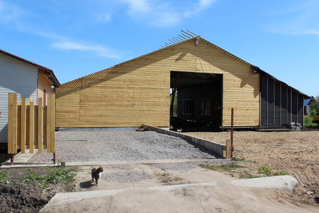 Пространство под конюшней до земли будет засыпано керамзитом и обшито все деревяшкой что бы не торчал камень и сваи