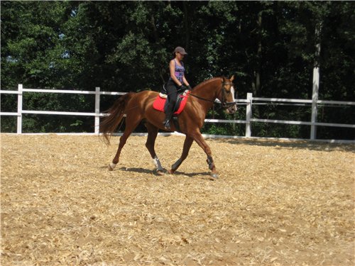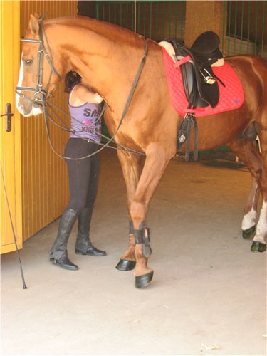 Юль, вставай к нам давай :) У нас появился новый тренер, сегодня на тренировке случилось чудо, она мне (первый человек) объяснила как руками работать, куда их девать и как поворачивать плечи :oops: Предыдущие тренера не акцентировали на это внимание и считали что я это и так знаю, хотя я сразу говорила, что я полный ноль и что мне надо объяснять всё и вся. Потом она на него подсела и сказала, что Хрю сбрасывается с повода. Что нам нельзя одевать эту резинку, а то мы его вообще испортим. Сняли. Я до потери пульса пыталась его подобрать, он задрал чайник и ни в какую не хотел, пропыхтя энное количество времени над заданной целью, добившись уступки с его стороны мы от него отстали :) Я была оооочень им довольна...