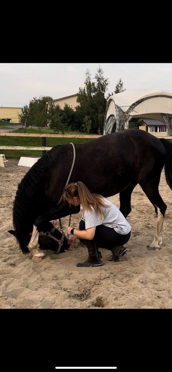 Кобыла абсолютно безопасная, но активная и сильная. Не высаживает, в точку не уходит, ничего не боится, ходили в лес на недоуздке и кордео.