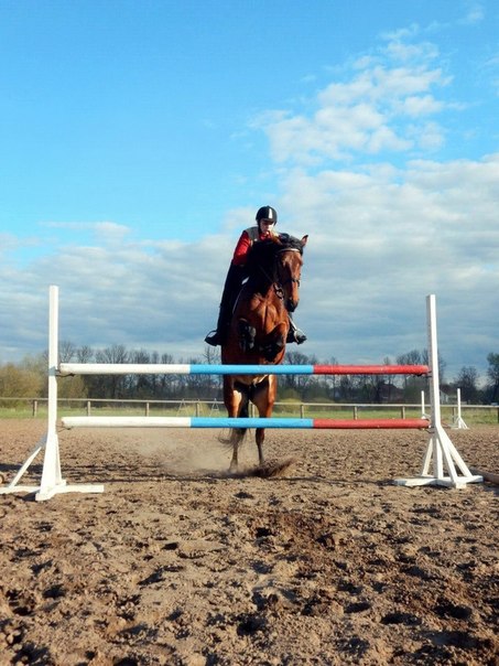 Латвийская помесь, 2008 г.р. 160 в/х. Напрыгана маршруты 100, 110, одиночные 130, 140. Не свечит, не козлит, не кусается, колется, пшикается без проблем. Идеально подойдет под уверенно ездящих детей и под взрослых, уверенных всадников.