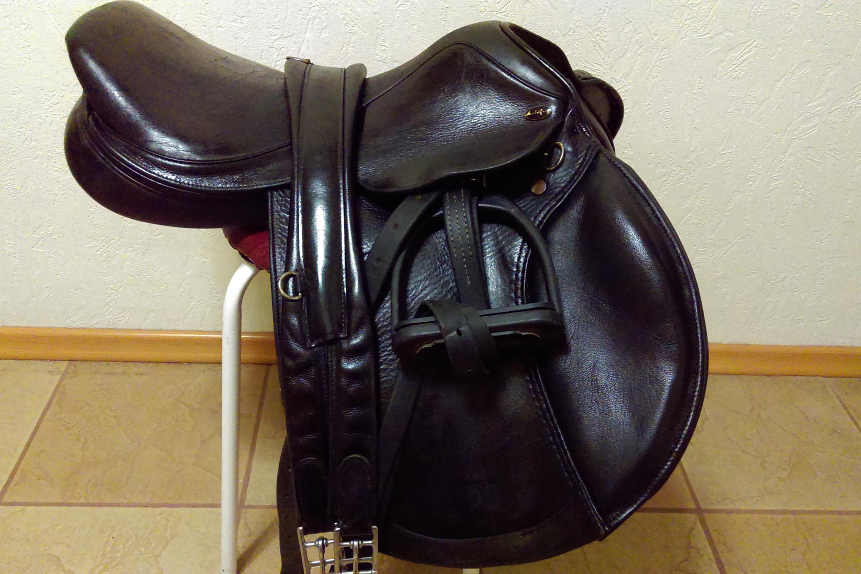 Седло в хорошем состоянии. Есть небольшие потертости от путлищ на крыльях. Передние и задние упоры на липучках. Можно удобно отрегулировать под ногу всадника.