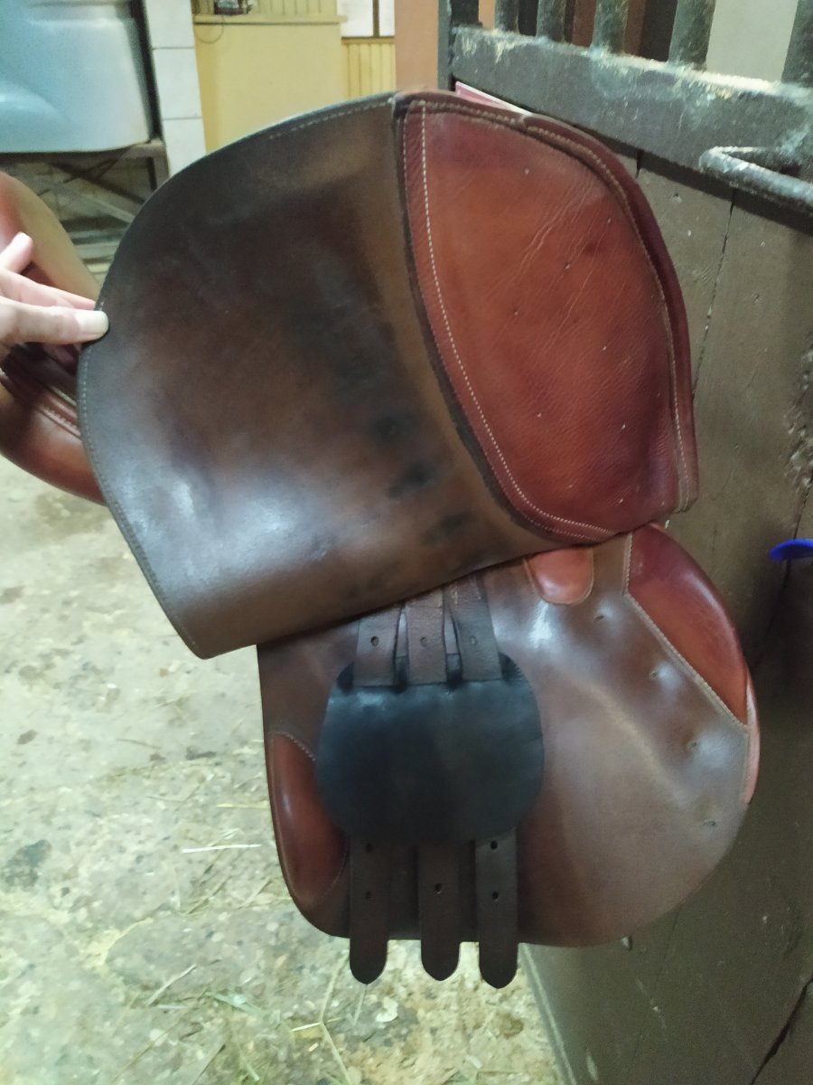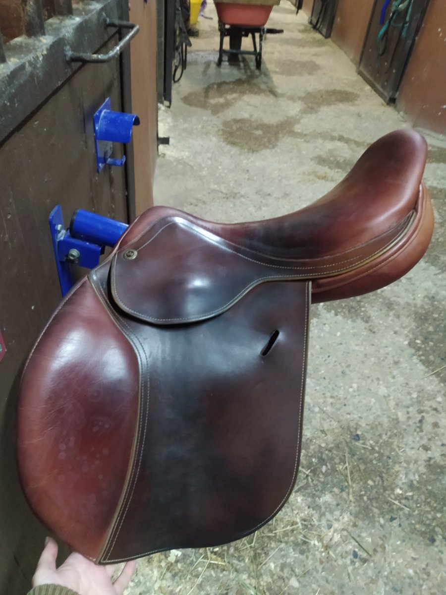 17 по всаднику, на среднюю спину, невысокую/среднюю холку. Гибкий ленчик, можно подогнать под лошадь. Канал 3 пальца. Очень мягкое, удобное седло. Использовалось мало, за 2 года у меня ездили на нём всего несколько раз, бережно хранилось и промазывалось