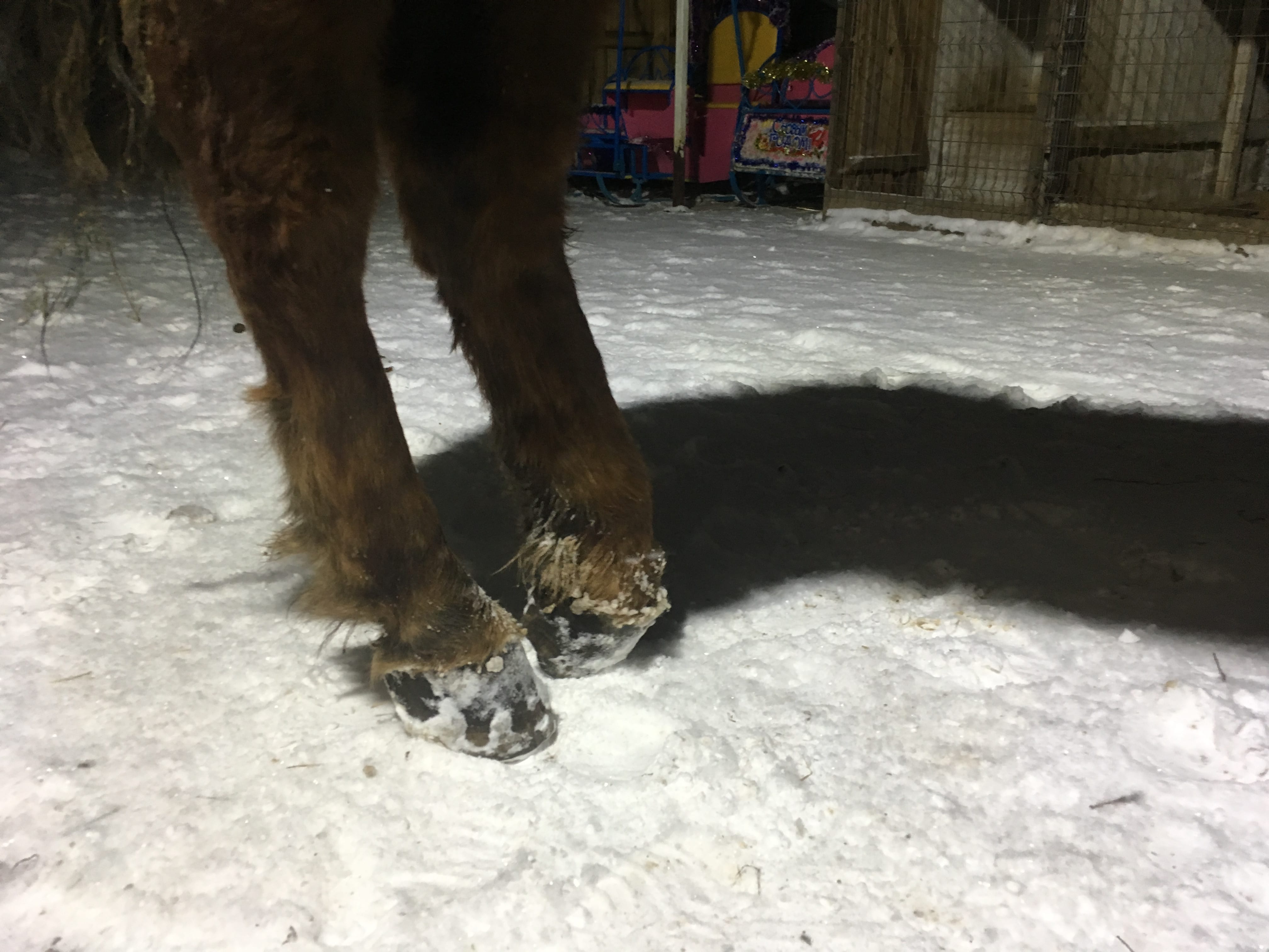 И не настолько это затратно, как кажется. Основные траты будут разово на рентген (посмотреть, что там с костями и суставами на ЛЗ и посмотреть угол и состояние копытной кости/лизис) и еще УЗИ, может. Раз в неделю это не понадобится, максимум - повторить через полгода, а то и год. Расчистка, да, регулярная трата.. ну, обычная цена за расчистку (лишь бы ее автор реально знал, что делать с такими ногами и имел опыт восстановления). Вела и веду коней и в более "страшном" состоянии на вид, вполне себе любимы владельцами. Из них умер только один и то не из-за своего состояния, а на 100% из-за халатности персонала конюшни. Понятно, что есть вариант "пусть уж не мучается". Но опять же - ламинитные копыта можно сделать если не здоровыми (зависит от степени повреждений), то более комфортными. Контрактура эта.. ну вон ролики выше бросила - что было и что стало (или там тоже не контрактура?).