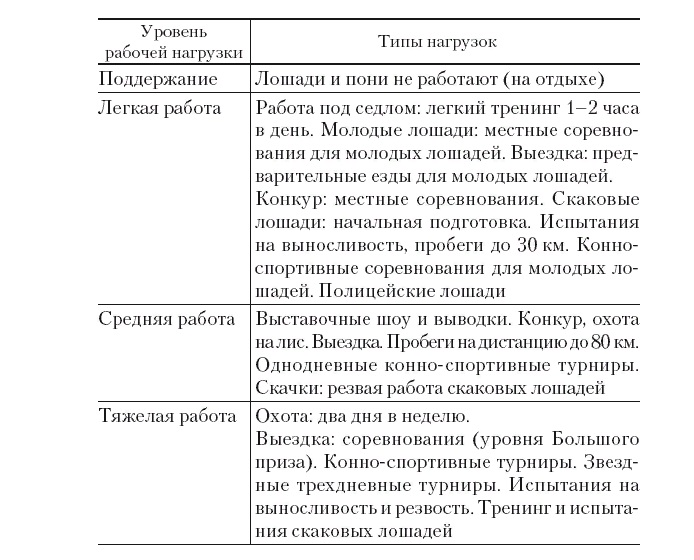 А что тут непонятного? У подавляющего большинства лошадей сейчас нагрузка и вполовину не такая, как была в госспортшколах и колхозах. Посмотрите, что считалось легкой нагрузкой для рабочей лошади: 35 км под седлом. В день! Много ЧВ 35 км каждый день на своей лошади проезжает?Я не поняла. Что вы хотели сказать?
