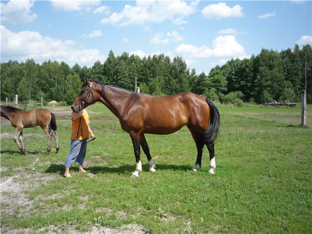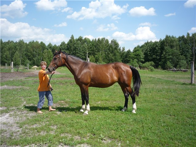 Мальчик очень интересный, на фотках ему 2 года с месяцем, "перестроишь" страшный, пузо, да голова)) Но от Ретивой(мамки его от Выборга) все детки в юном возрасте такие неказистые... Зато потом раскрываются, ух, красавцы)). Папаша у него Пиркофен 174 см - мощнейшее создание, правда возрастной уже, но красавЕц! Ноги, голова точёная, большая правда, но очень яркая, нарядная! Грудина какая, закачаешься! 8)