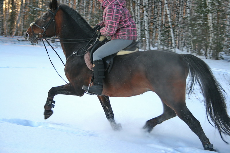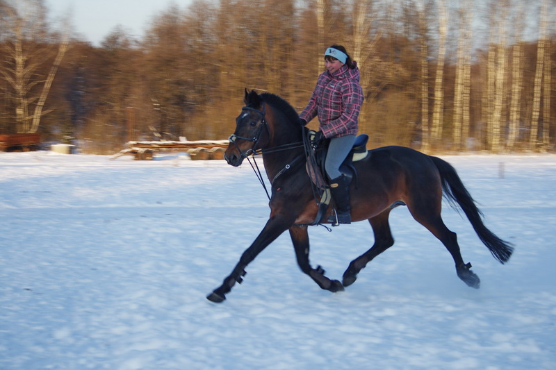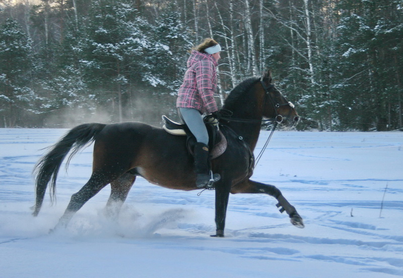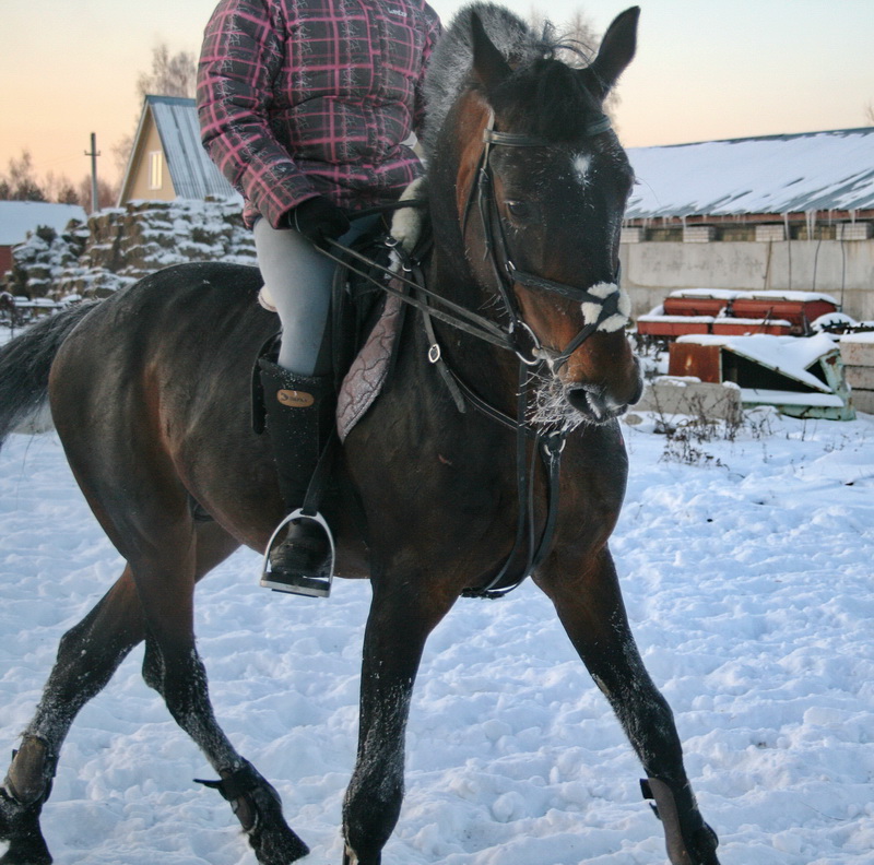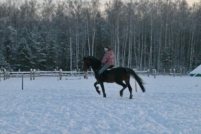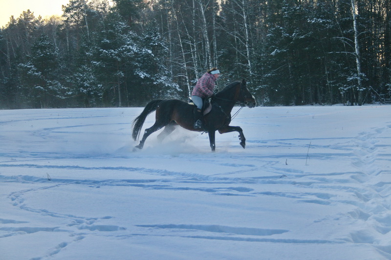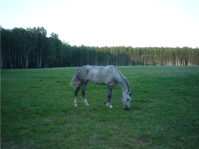 На старт, внимание, марш.. какой там шаг, он помоему вообще не знает таких слов, галоп, и сразу, и так весь час, мы еле отошли от конюшни, точнее отбежали на соседнее поле, он делал всё, и вставал на свечку и бежал рысью назад и крутился как юла, только домой, к бабам и всё тут. За сегодня на нём можно было сдать на 1 разряд по выездке, причём сразу всей группе, и принимание, и пируэты, и всё что хотите, но только не просто поработать...Если б я не знала, что ему 15 лет, то подумала, что просто заезжают молодую лошадь, выловленную из диких полей)))