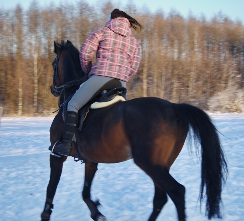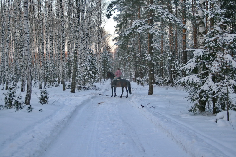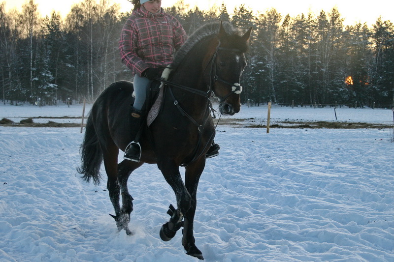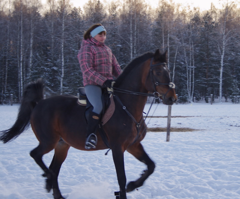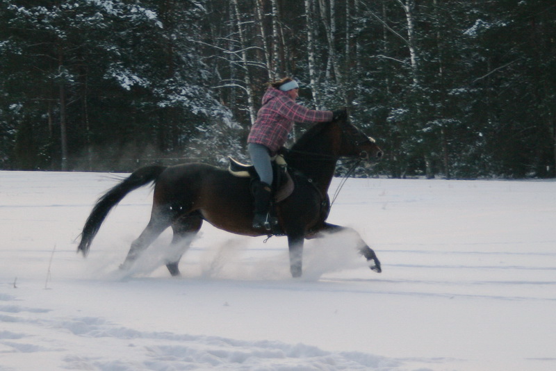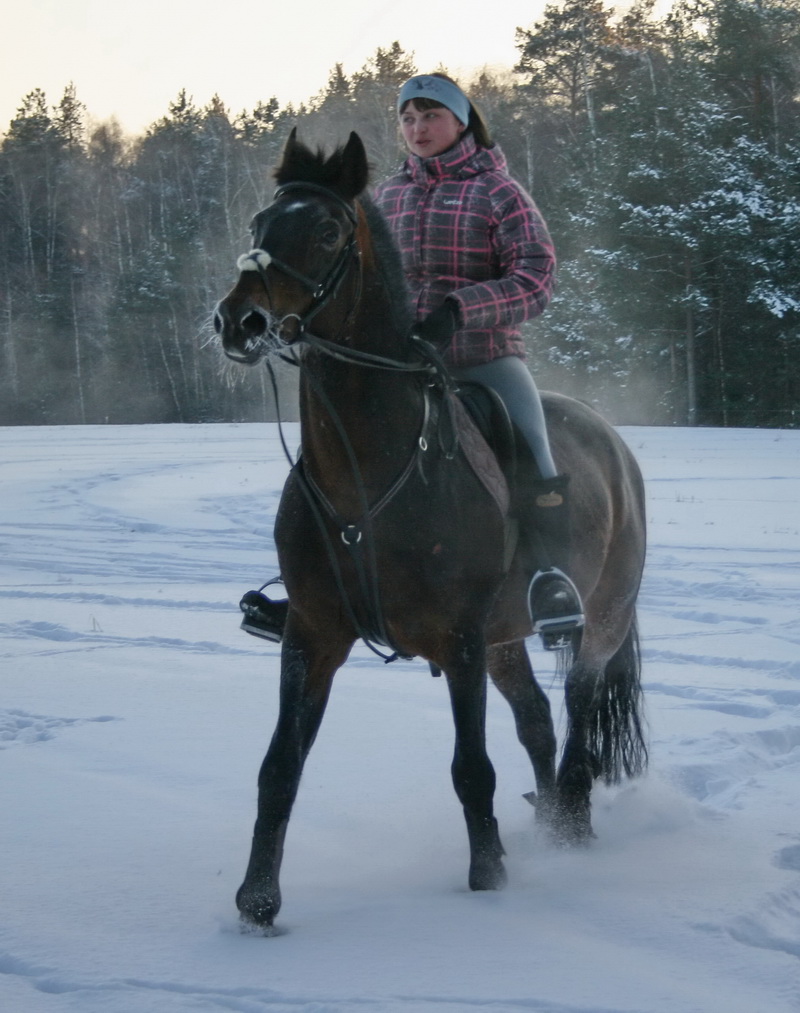На старт, внимание, марш.. какой там шаг, он помоему вообще не знает таких слов, галоп, и сразу, и так весь час, мы еле отошли от конюшни, точнее отбежали на соседнее поле, он делал всё, и вставал на свечку и бежал рысью назад и крутился как юла, только домой, к бабам и всё тут. За сегодня на нём можно было сдать на 1 разряд по выездке, причём сразу всей группе, и принимание, и пируэты, и всё что хотите, но только не просто поработать...Если б я не знала, что ему 15 лет, то подумала, что просто заезжают молодую лошадь, выловленную из диких полей)))