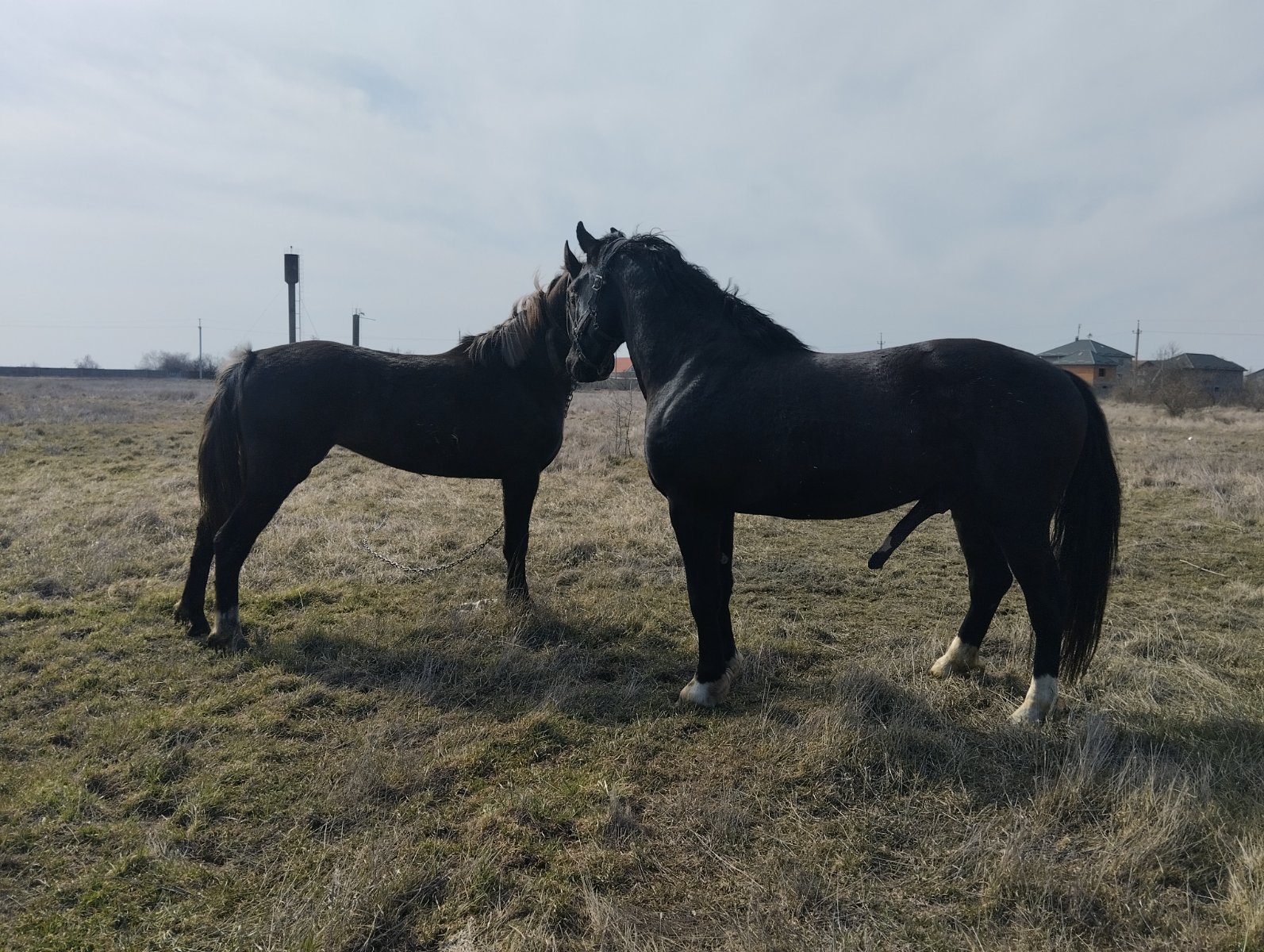 Честно, думала будет жёстче , а они со Скифом сразу нашли общий язык. На вид кобыла прям расслабилась в компании. Стала активно пастись.