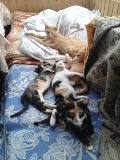 Три котенка девочки - 2 черепахового окраса и 1 трехцветная.