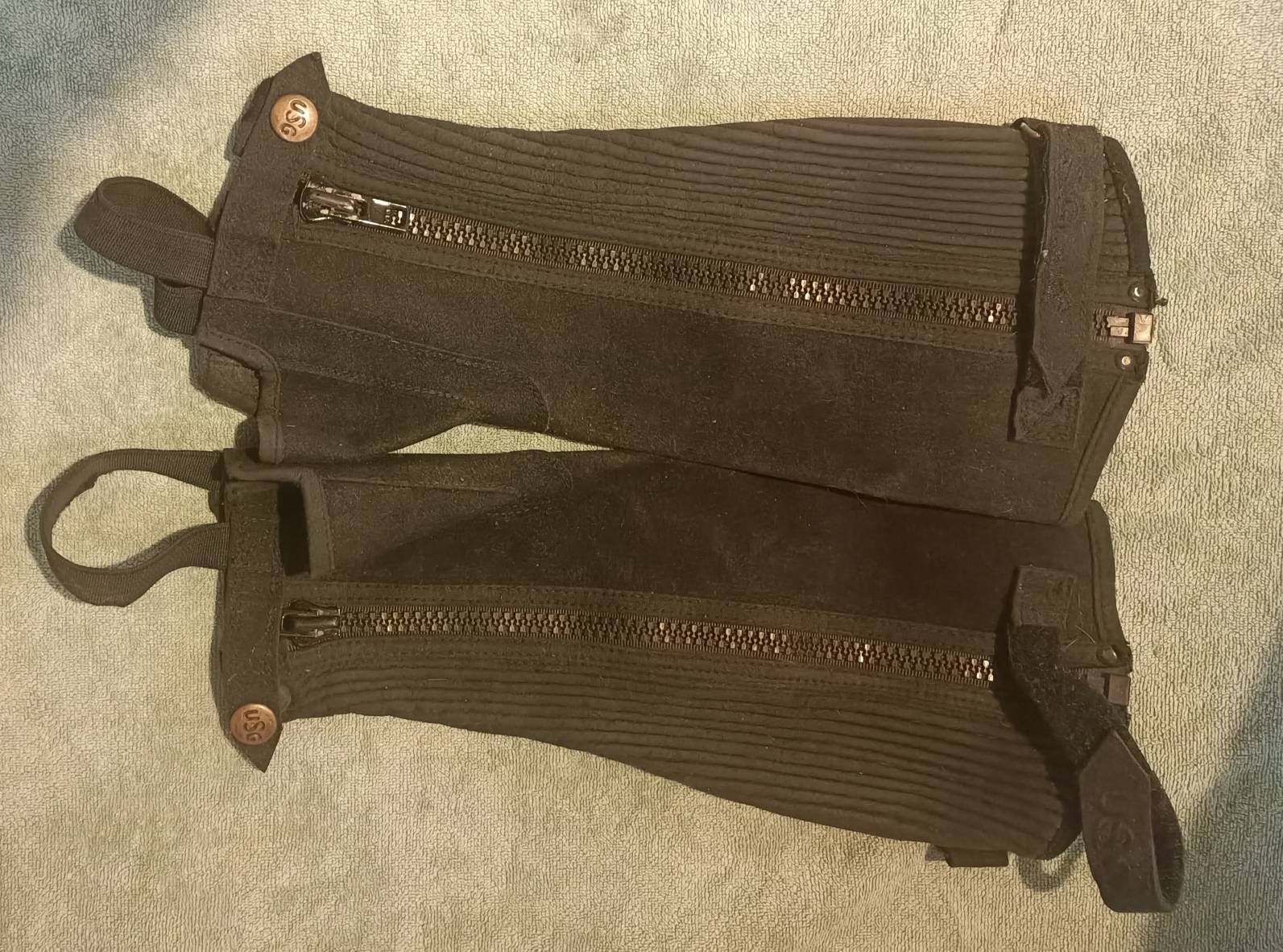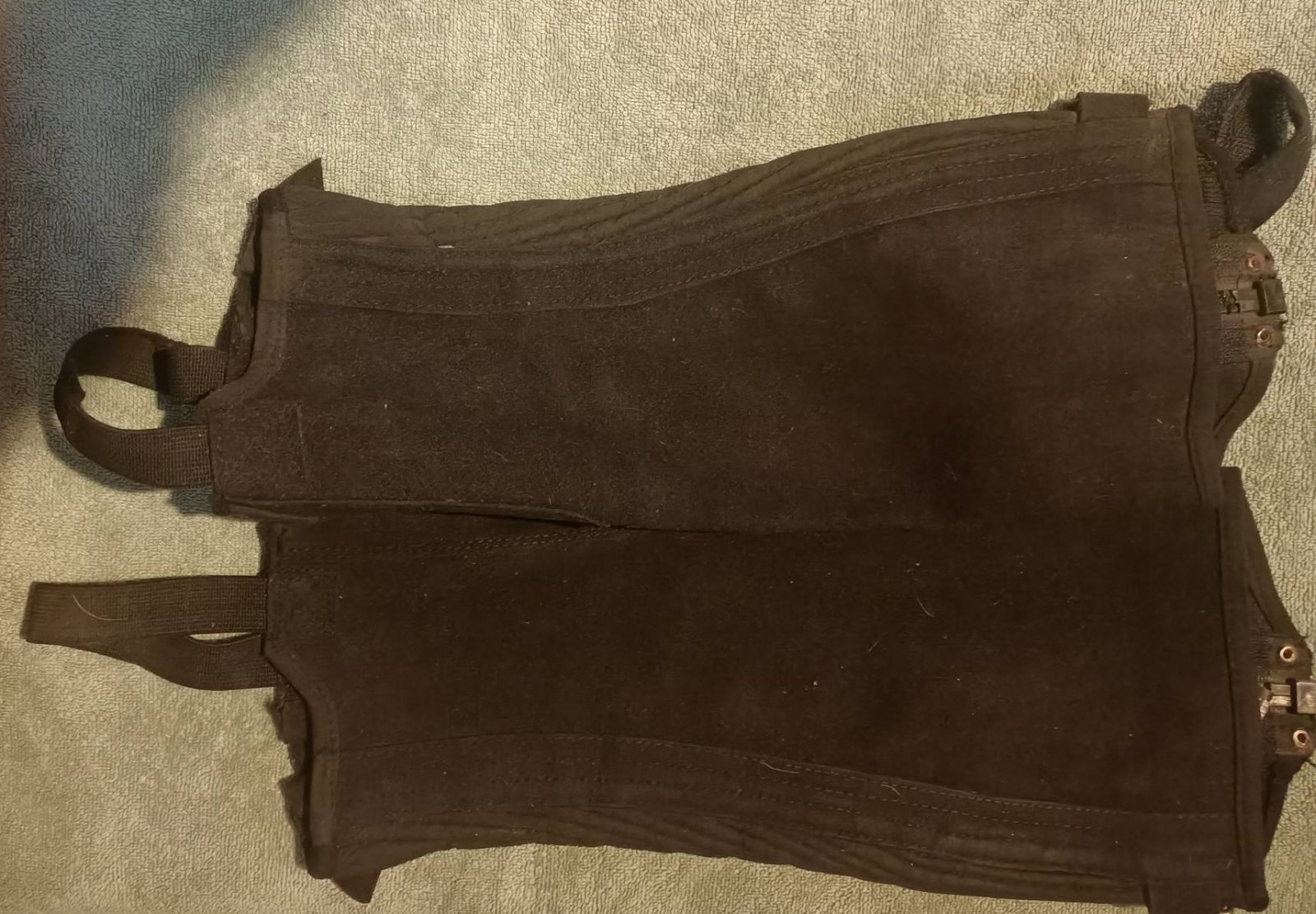 Продам краги детские высота 31, ширина в икре 25-26, искуственная замша, липучки и молнии работают, практически не носили. 1500 руб.
