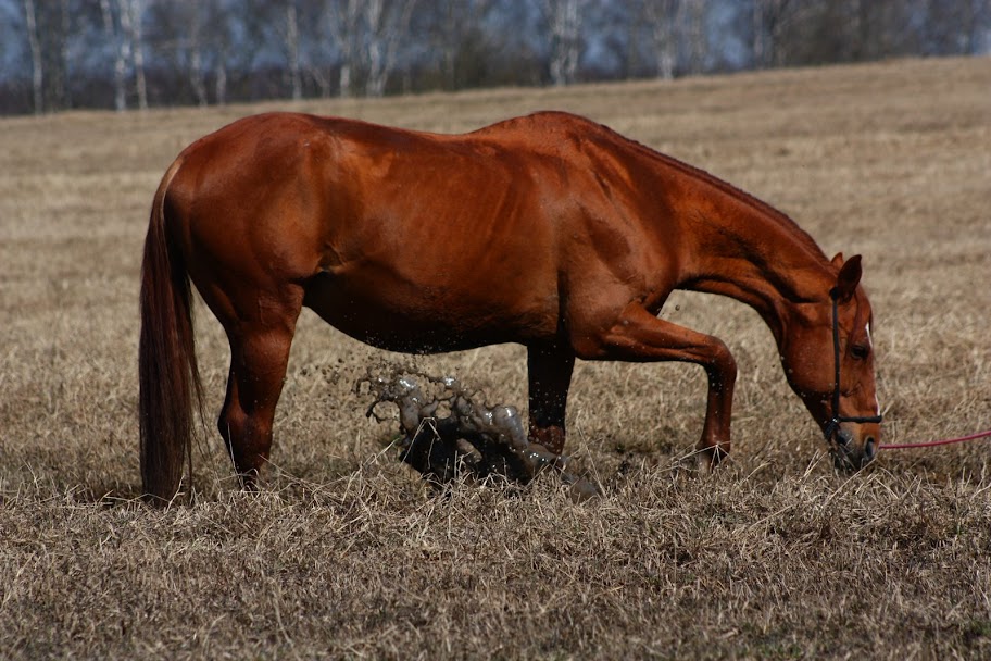 Или другой случай. Еду на чужом коне, Хлопке, вдруг он замечает на опушке палатку и шугается от нее. Я не даю ему уйти вбок - только или к палатке или назад... мы изображаем вестерновое осаживание на широкой рыси :mrgreen: Хлопа стоит, вытаращился на эту палатку, лапы дрожат, хырчит... я только и думаю - разнесет? не разнесет? И тут из палатки выходят люди и спрашивают: ой, а можно на лошадке покататься? :lol: