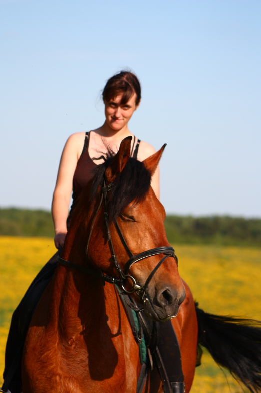 Кобыль у меня слушает ноги и приложение повода. Нога - нос вниз, повод - приложение к шее - поворот в противоположенную сторону. Остановка - голосом.
