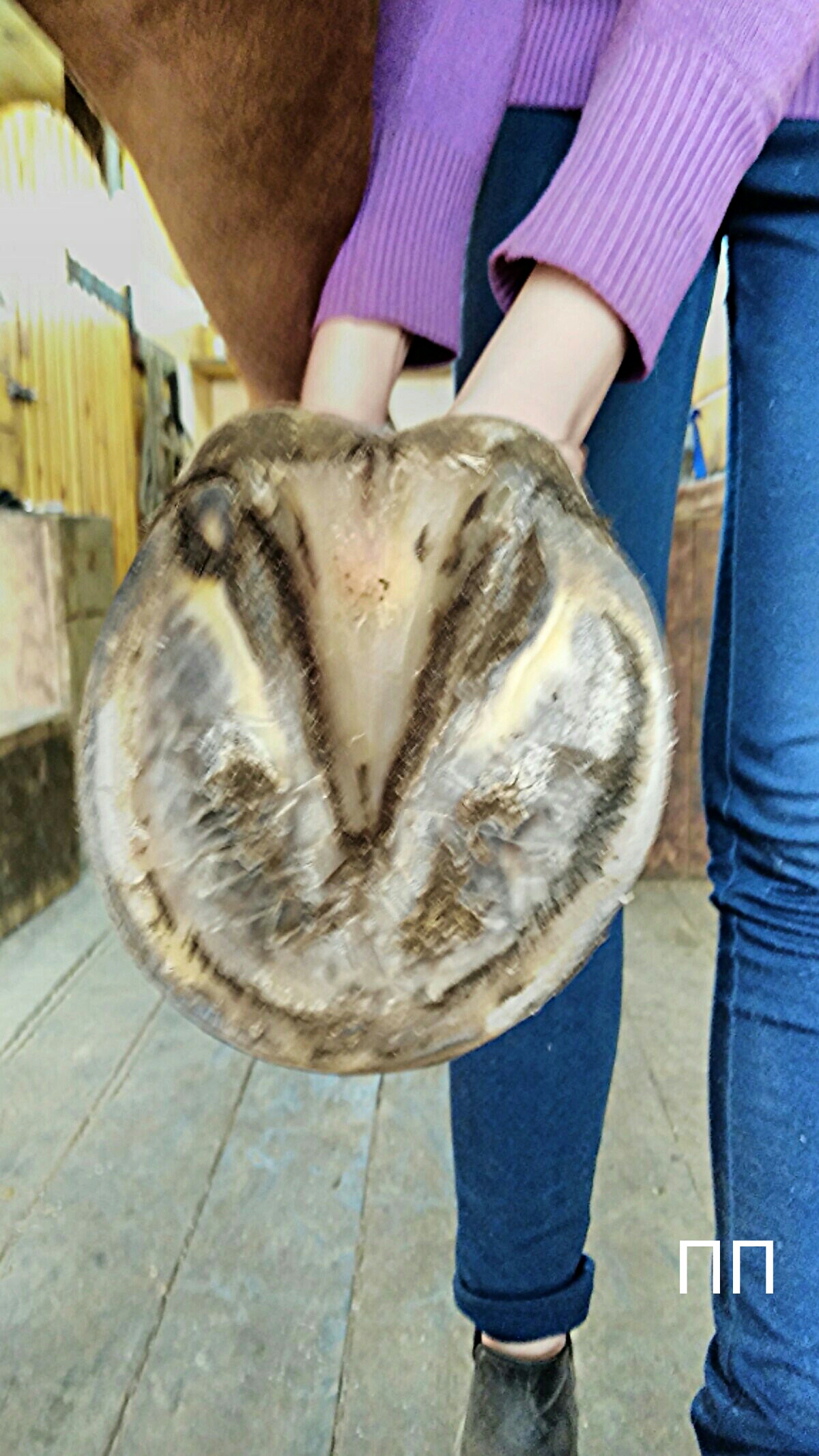 В кратце расскажу сложившуюся ситуацию. Ковалей в нашем городе нет хороших, из соседних городов ехать не хотят или придется ждать их по пол года, поэтому я взяла инициативу с свои руки. В деле расчистки я профан, оттого и прошу помощи. Ковать я не умею, клеем этим никогда не пользовались и видеть–не видела. Лошадь находится в работе, поэтому я ее не поставлю, она не инвалид все же. Печальных последствий от работы на лошади на таких копытах визуально не наблюдается.
