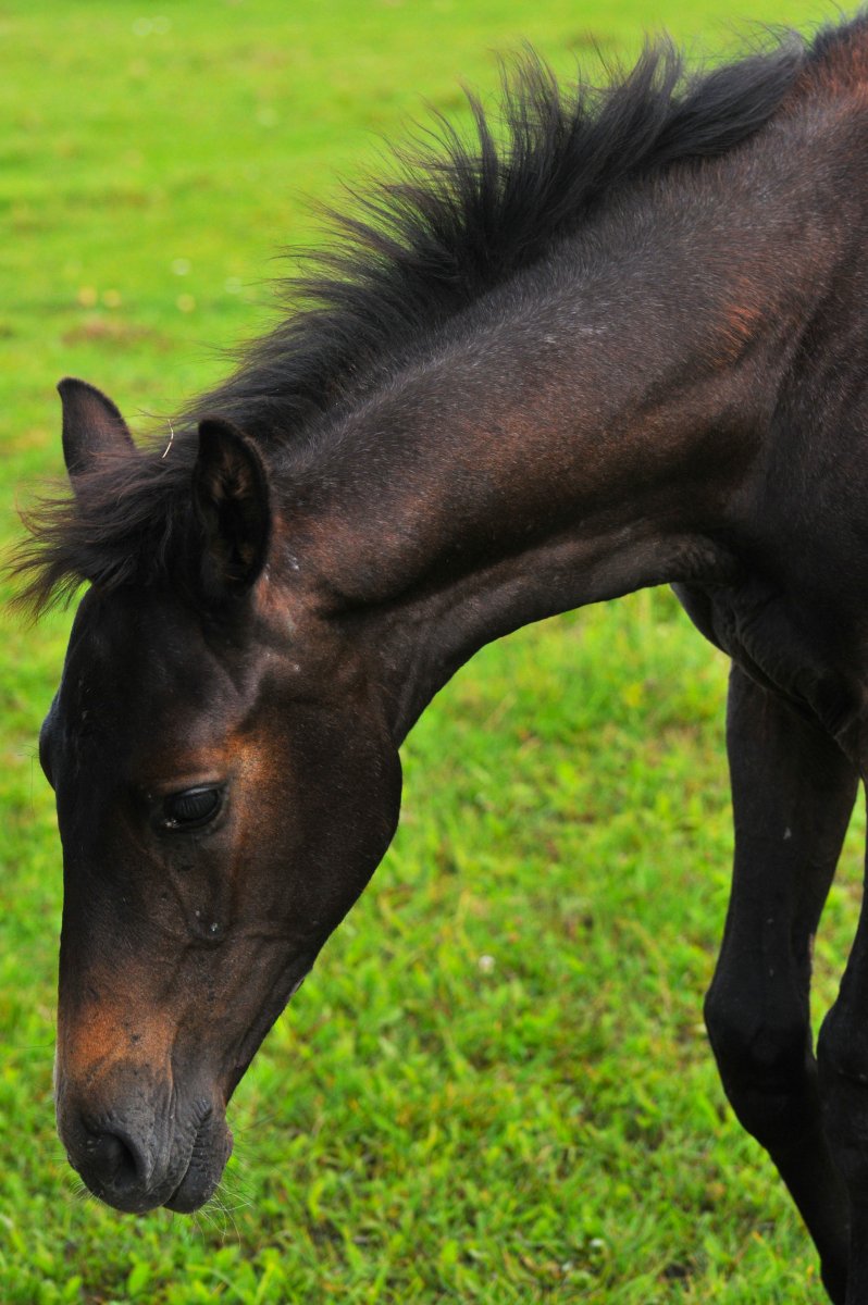 Прекрасная адекватная малышка! Доверяет человеку и готова с ним общаться. Растет с маткой на пастбище. Родословная богата выезковыми и конкурными звездами!