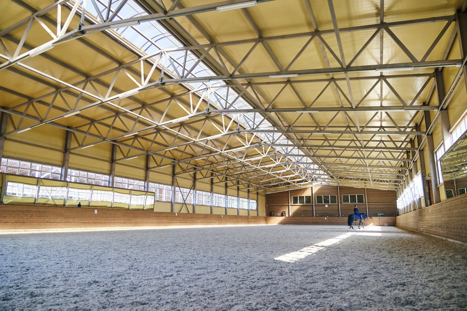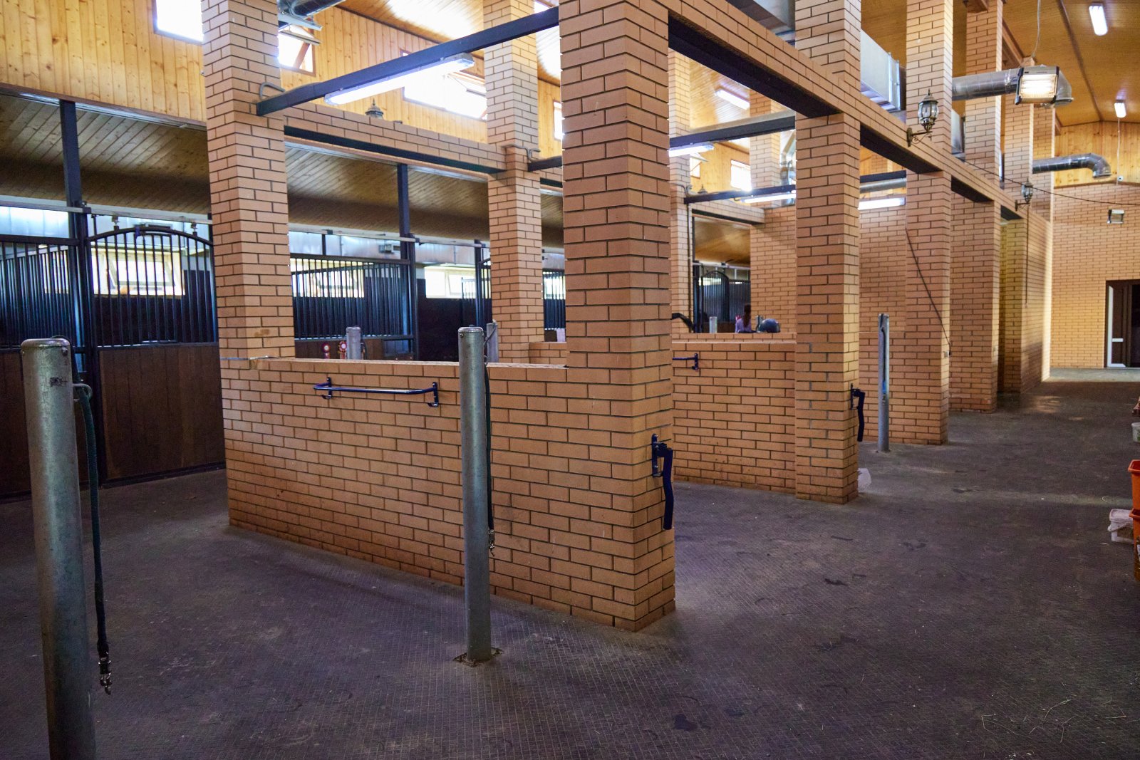 - кирпичная конюшня на 29 денников, оборудованная 3 амуничниками, денниками 3м*4м, 2 соляриями, 6 седловочными боксами, 2 мойками, системой принудительной вентиляции (приток и вытяжка отдельно). Во всей конюшне застелены резиновые антискользящие маты. 2 раза в месяц проводится санитарная обработка всей конюшни.
