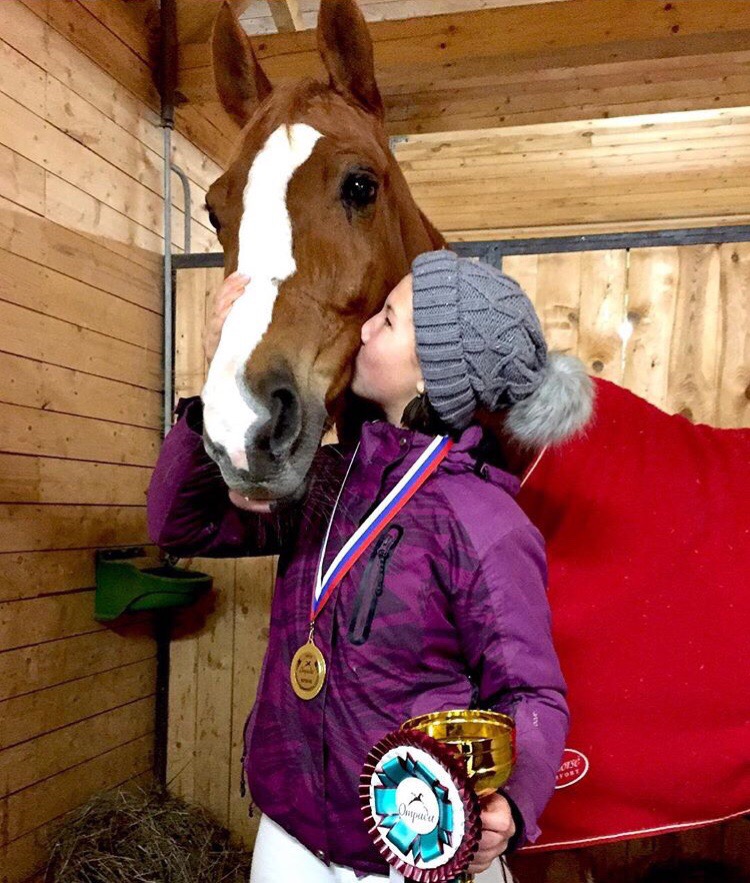 Замечательный конь-учитель: легкий в управлении, контактный, прощает ошибки и подсказывает всаднику, знает все боковые элементы на 3х аллюрах и не только, спокойный и адекватный.