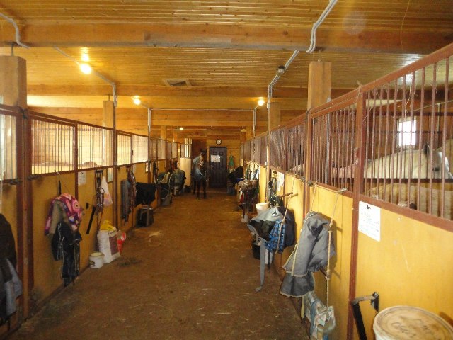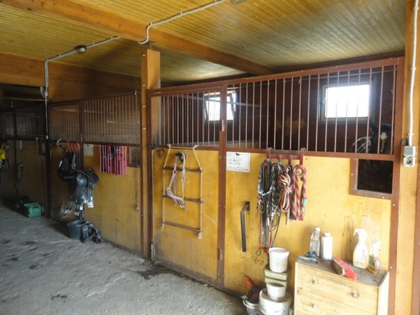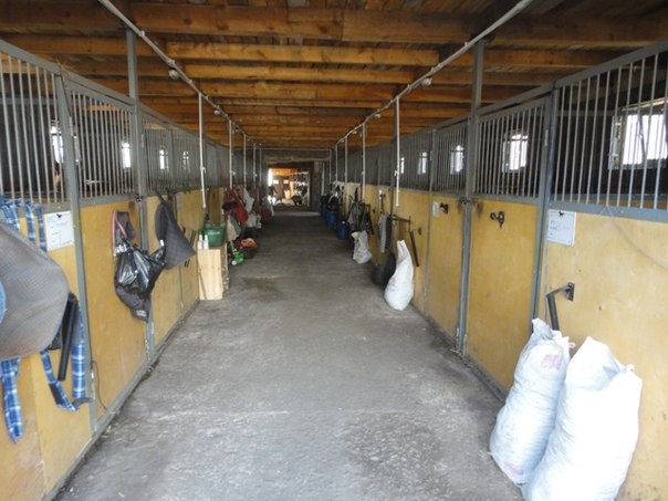 - Большая светлая конюшня с просторными денниками 3,30х3,50, в каждом деннике окно-стеклопакет, все окна открываются, широкие проходы 3 метра;