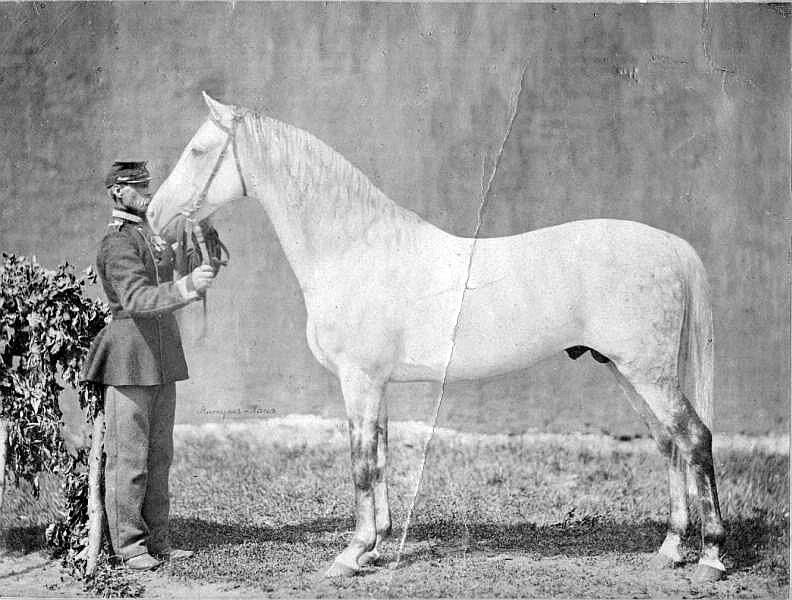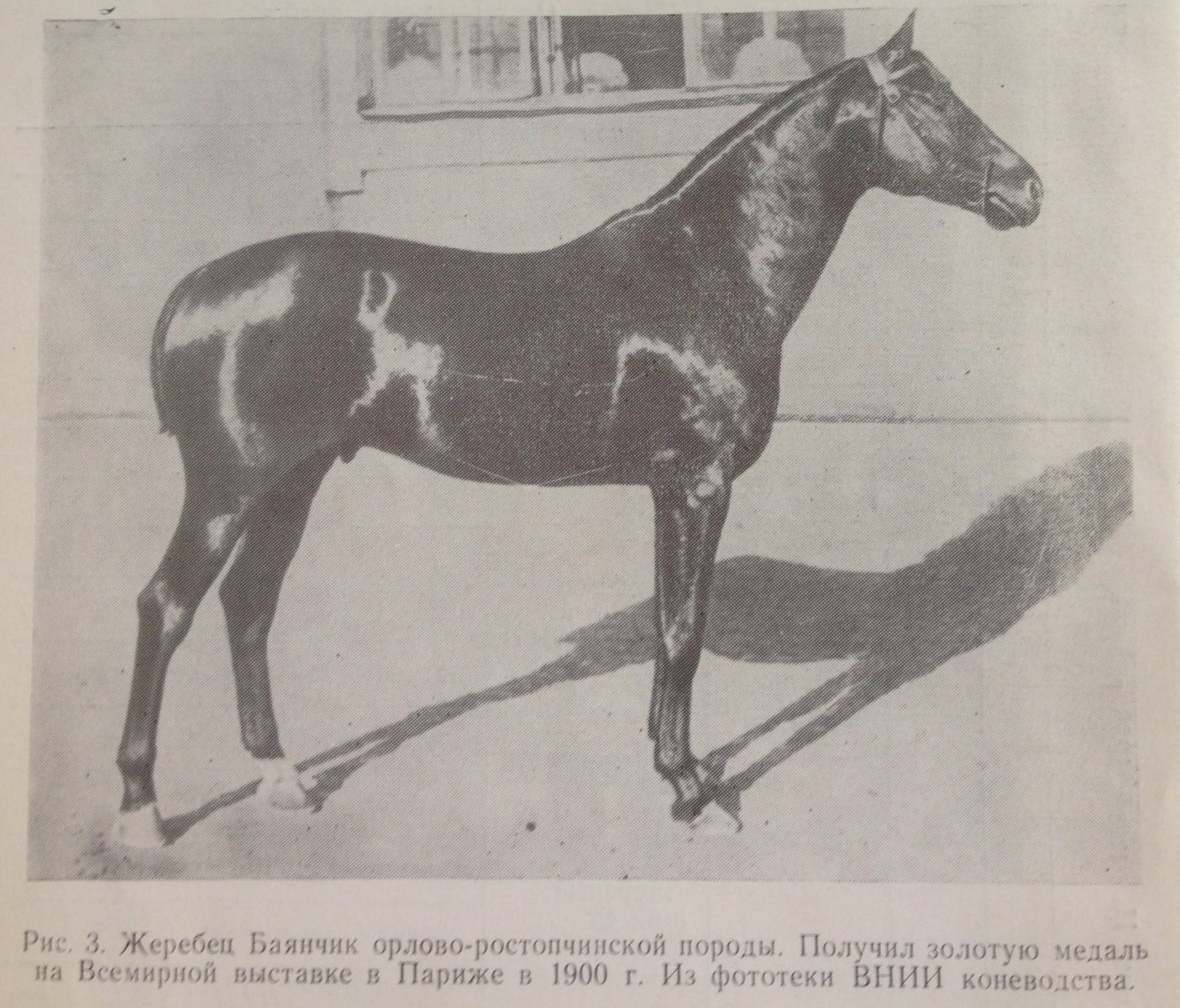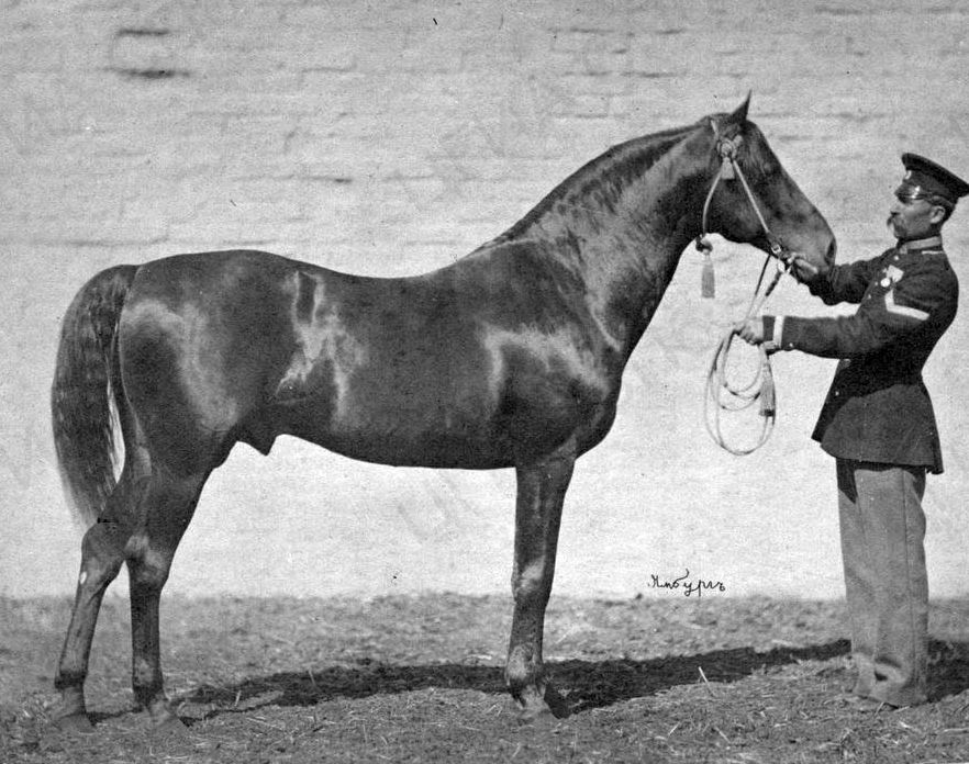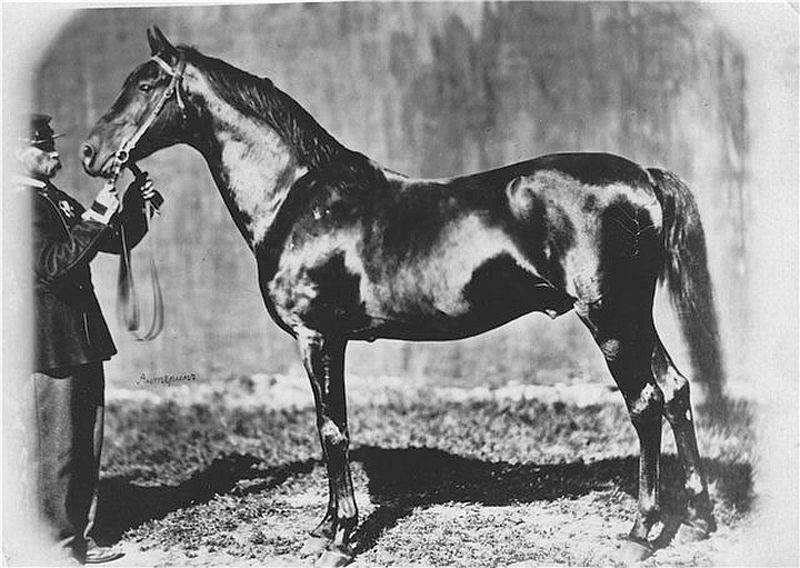 Ну не знаю. Фотография появилась в 1840-м году и там была такая длительная выдержка, которая фотографировать лошадей просто не позволяла. В 1845-м году оба завода (и Орловский и Ростопчинский) были выкуплены государством, а в 1867 г порода была уже представлена на всемирной выставке в Париже как орлово-ростопчинская (т.е. уже как минимум три поколения разведения помесей орловцев и ростопчинцев в себе). А в это время качество фото было ещё очень далеко от фото Ибрагима, поэтому орловским верховым он не может быть ни как. Хотя тип к орловским верховым ближе всего и я об этом уже писала.ошибаетесь.